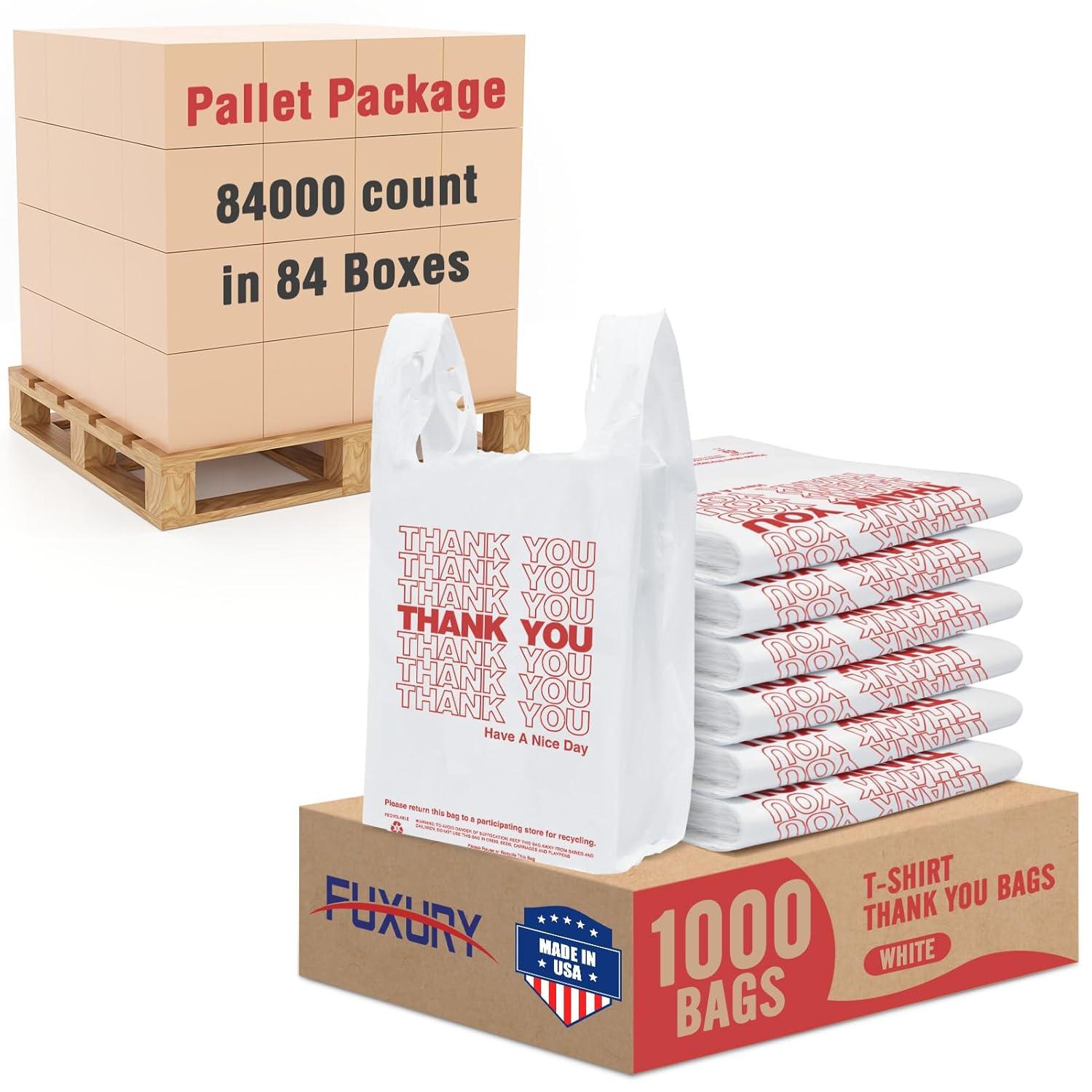 Fuxury 1000 Count Thank You Plastic Bags (12" x 6.5" x 21") White, T-shirt, Grocery, Take Out, To Go, Retail Shopping Bags in Bulk (Made in USA)(White)