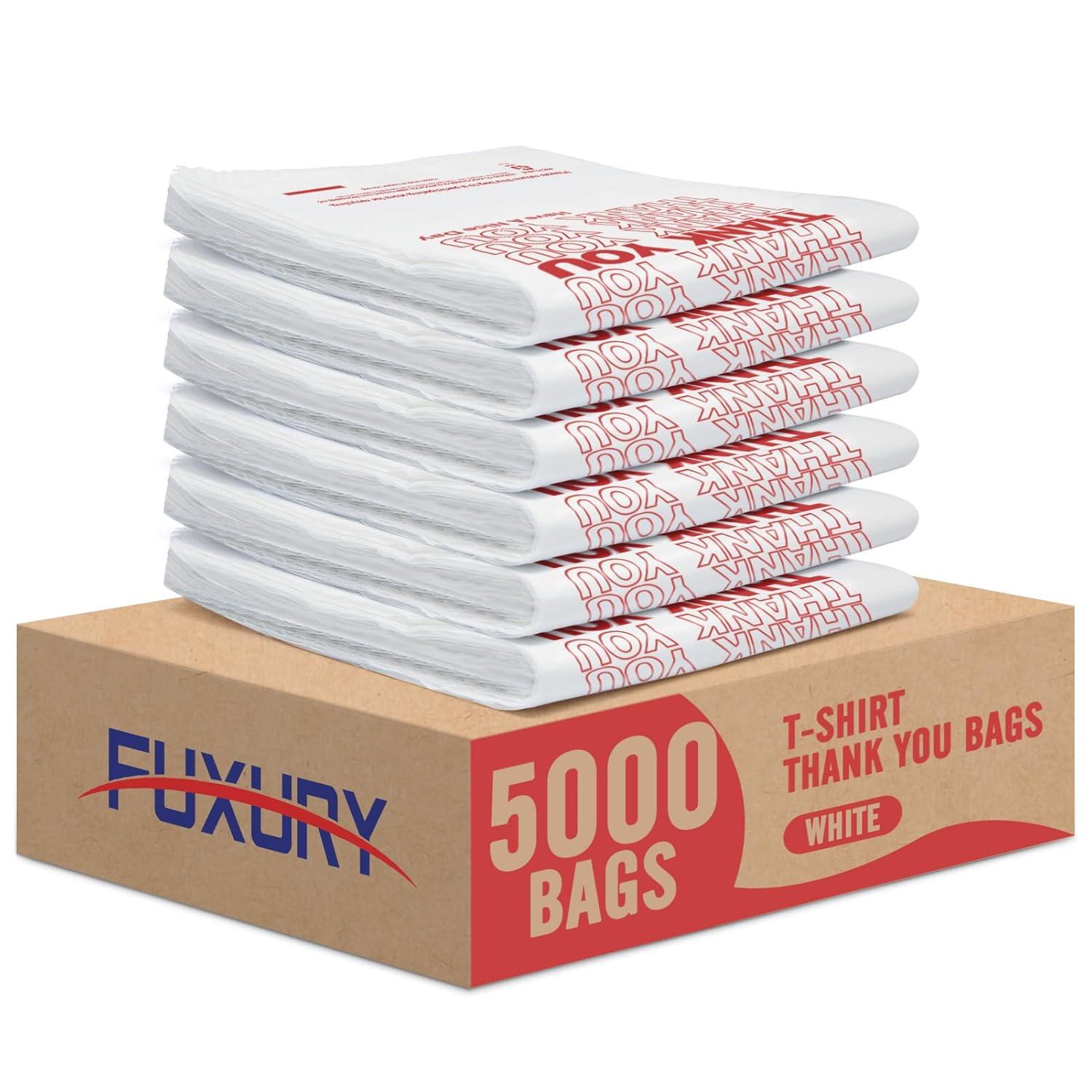 Fuxury 1000 Count Thank You Plastic Bags (12″ x 6.5″ x 21″) White, T-shirt, Grocery, Take Out, To Go, Retail Shopping Bags in Bulk (Made in USA)(White)