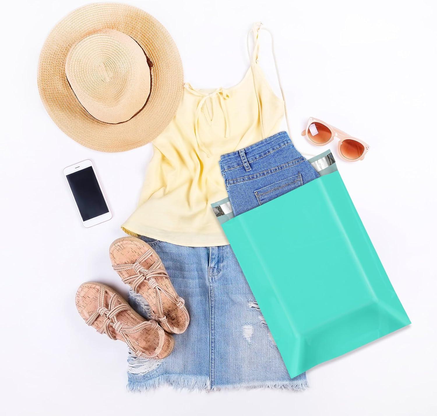 Fuxury 1000pcs 10x13" Poly Mailers,Waterproof Shipping Bags for Clothing,Strong Adhesive Shipping Envelopes for Small Business,Self Seal Poly Mailer Bags,Flexible Mailing Bags White(Teal)