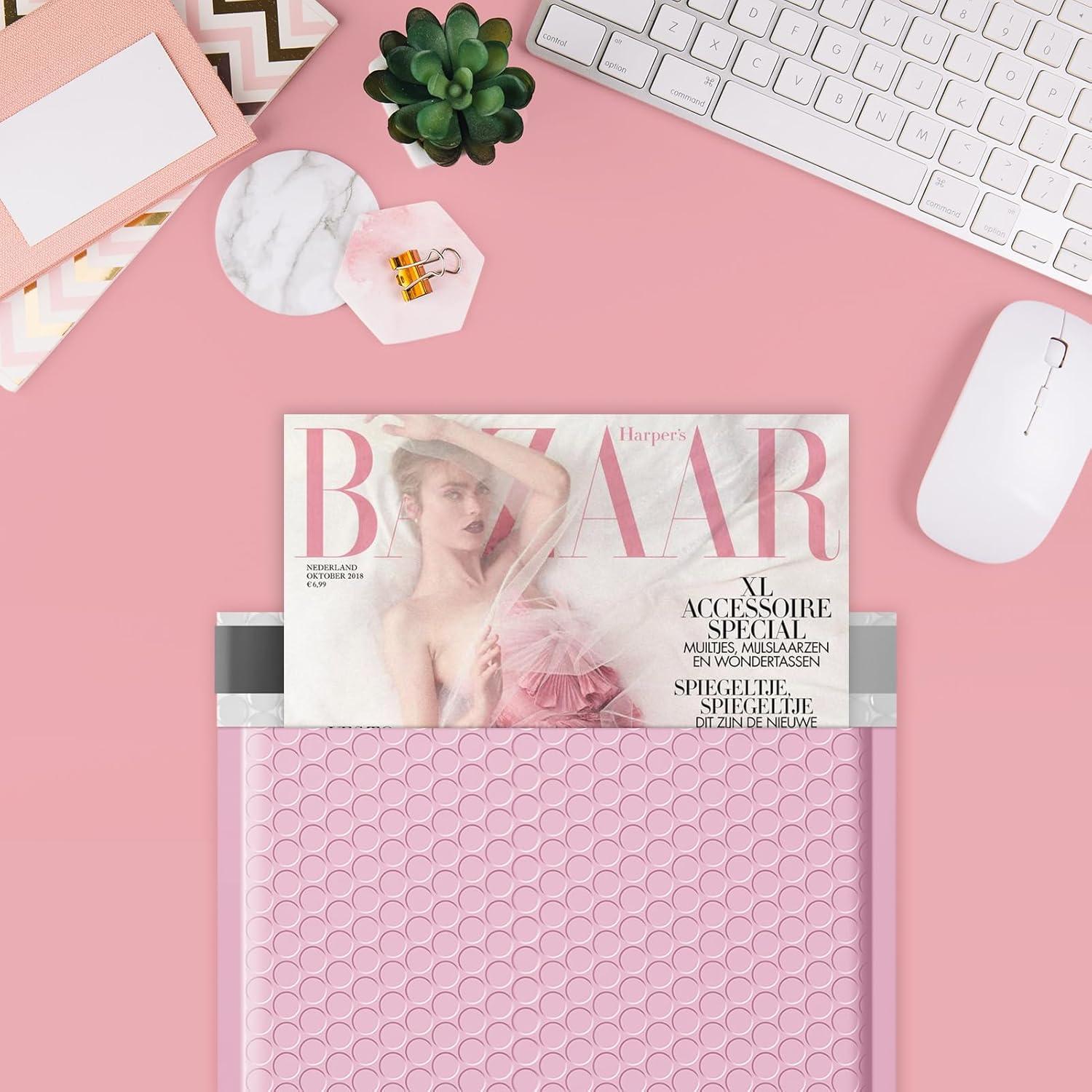 Fuxury 500 Pack Teal Bubble Mailers 8.5×12″ Medium Opaque Padded Envelopes Strong Adhesion Bubble Mailer Thick Padded Envelopes Mailers for Small Business Mailing Books Clothes Makeup Supplies(Light Pink)