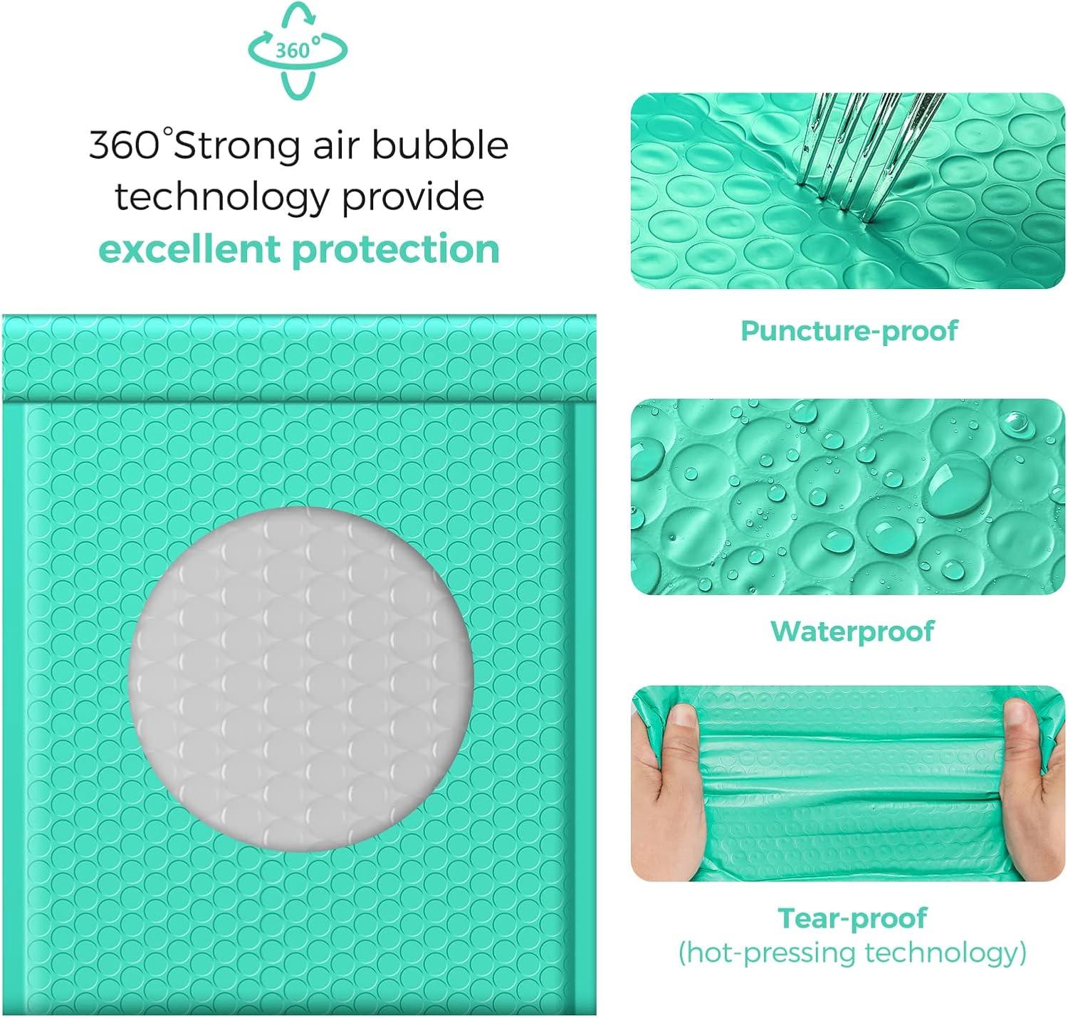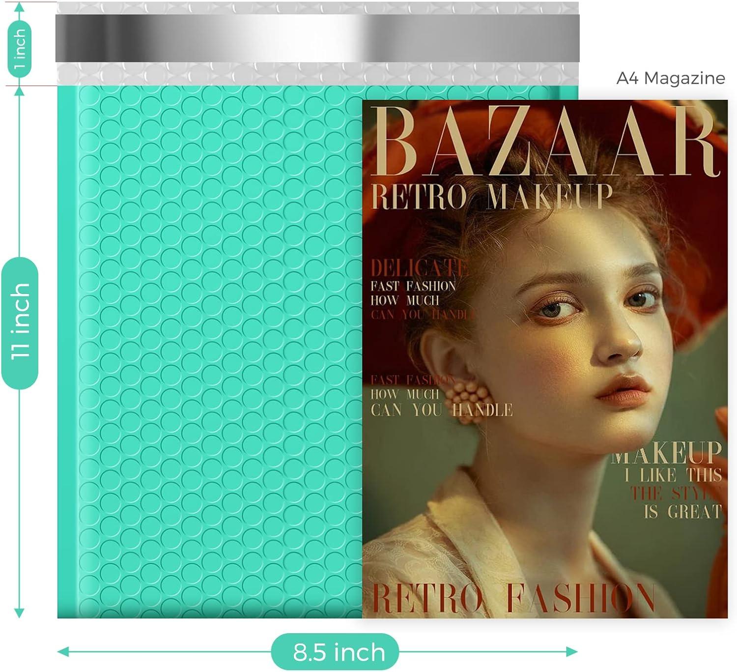 500 Packs Teal Bubble Mailers 8.5×12: Our opaque bubble envelopes are a reliable shipping and packaging solution for your retail or online business. The #2 bubble mailers outer size is 8.5×12 inch, while the inner size is 8.5×11 inch.