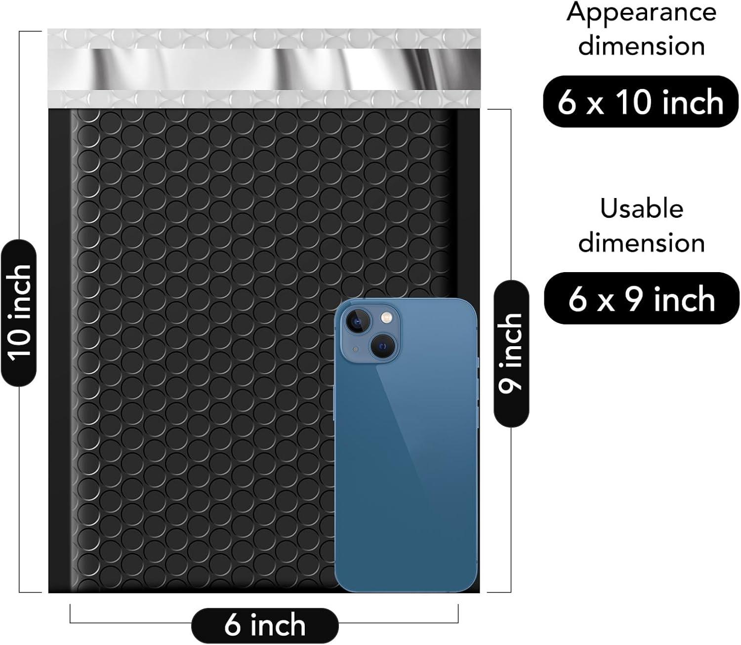 Perfect Size Bubble Mailer: The poly White bubble mailers outer size is 6×10 inch, while the inner size is 6×9 inch. It is very suitable to transport for jewelry, makeup, cards, phone case, Lips, photos, handcraft and more.