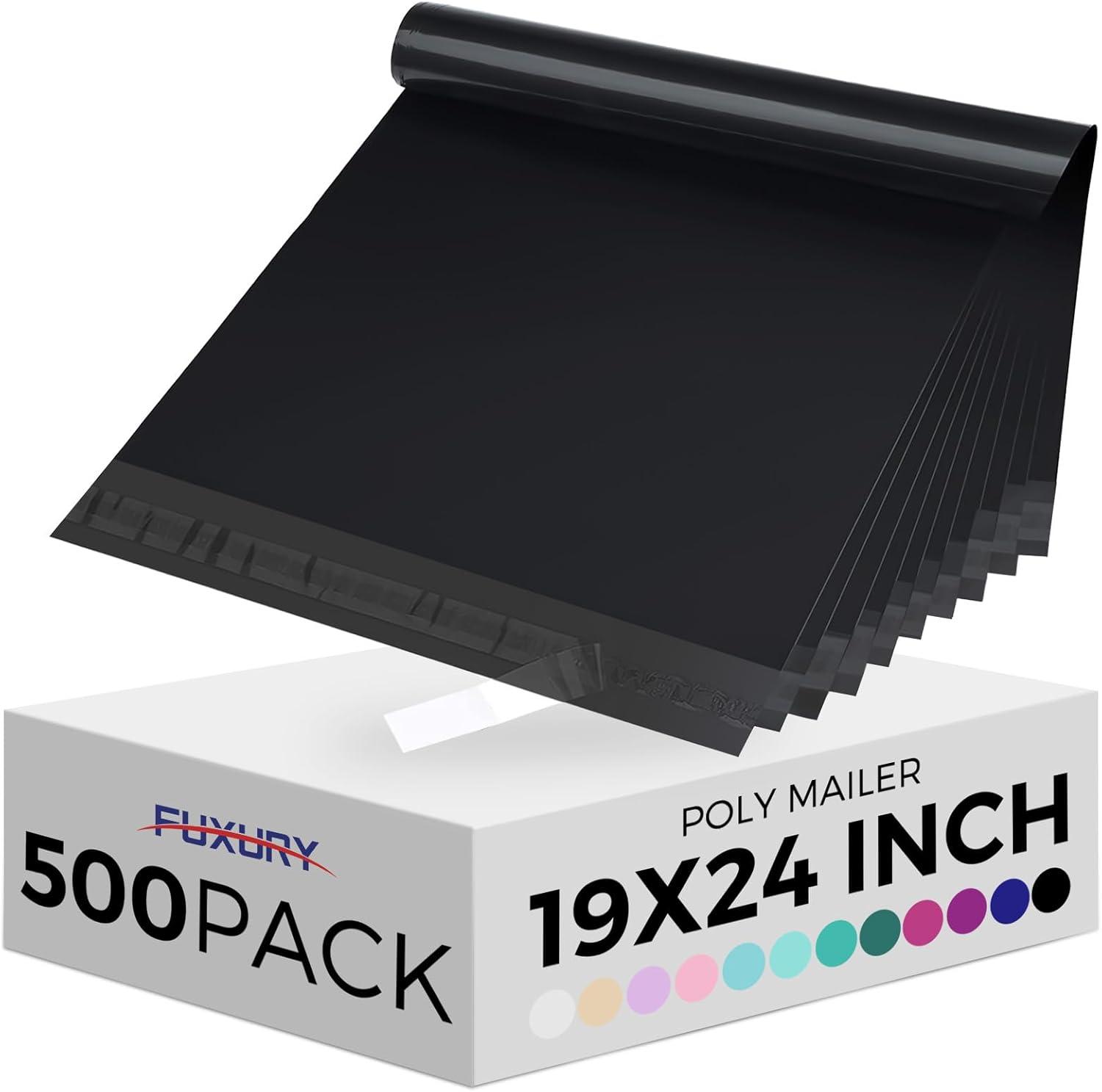 【Poly Mailers】The Fuxury 12×15.5 plastic shipping bags, pack of 500pcs, with black color. Mid Size is suitable for multiple products shipping like T-shirts, skirts, shirts, dresses, jeans, cosmetics, small item, books, accessories. Perfect for small business, boutiques, and online sellers.