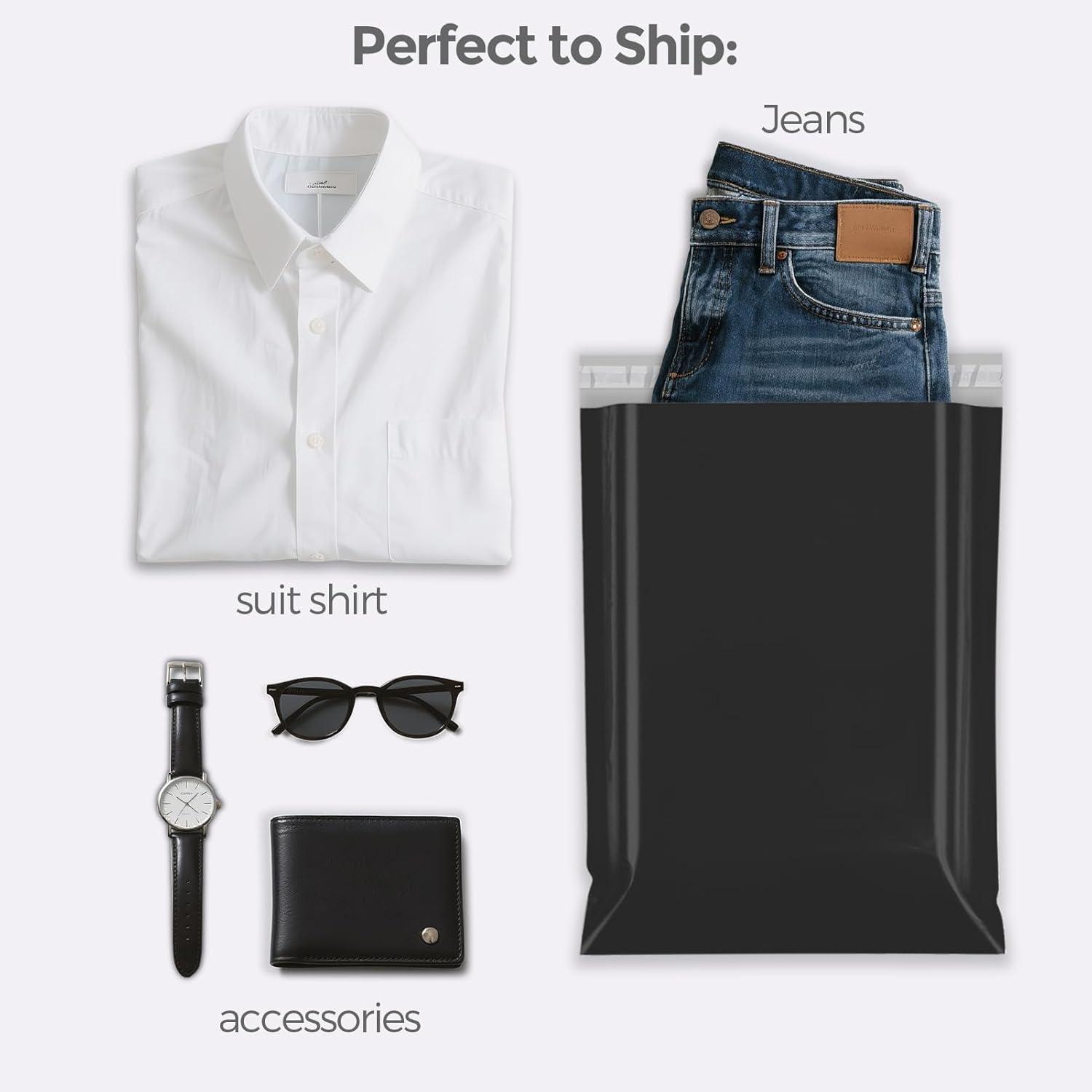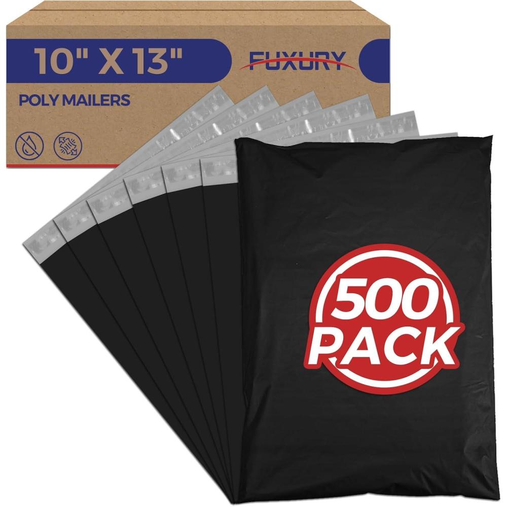 【10×13 Poly Mailers】The Fuxury poly mailers 10×13 pack of 500, with black color, suitable for multiple products shipping like clothes, t-shirts, skirts, shirts, cosmetics, small items and more, perfect for small business, boutiques, and online sellers.