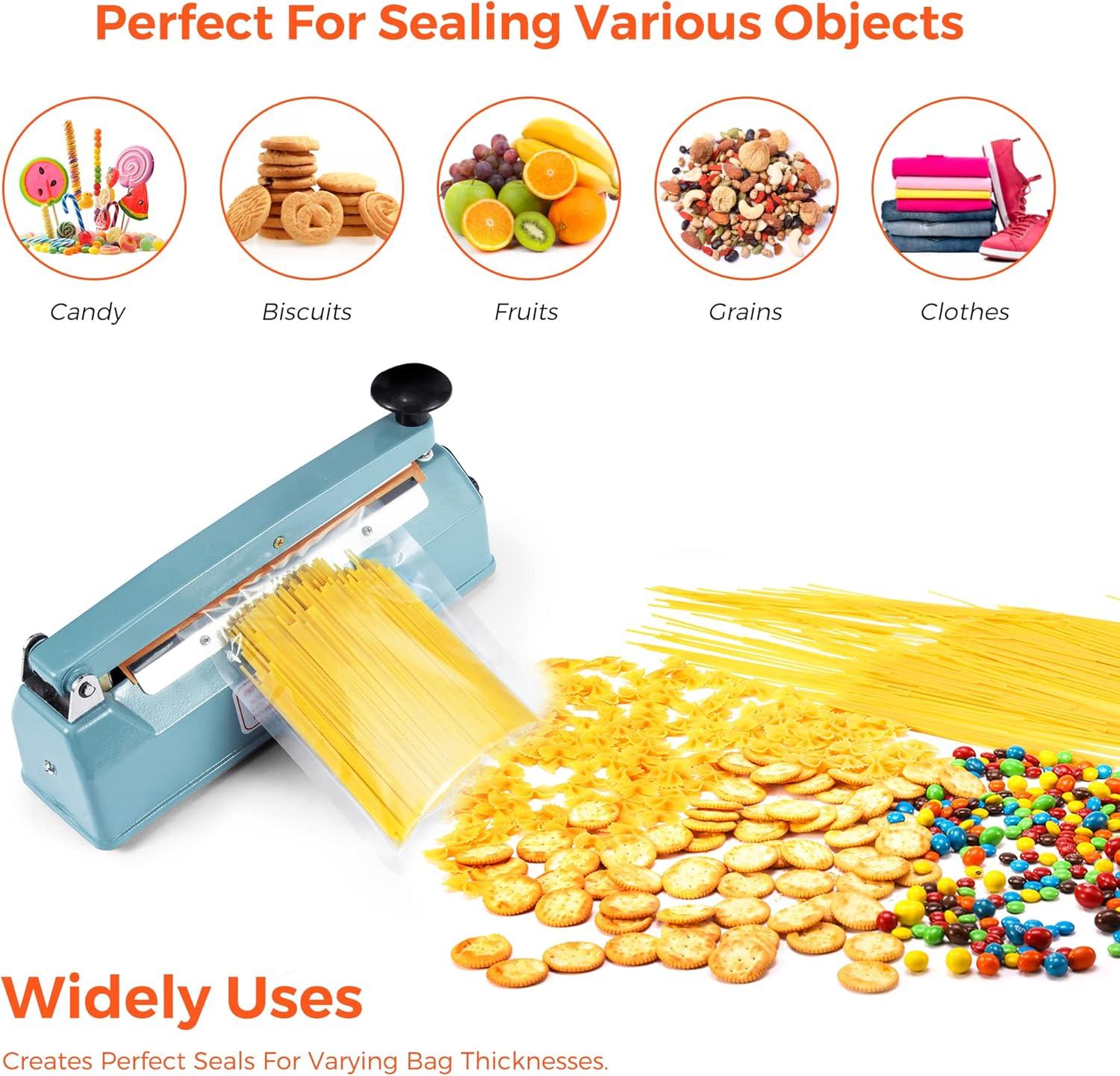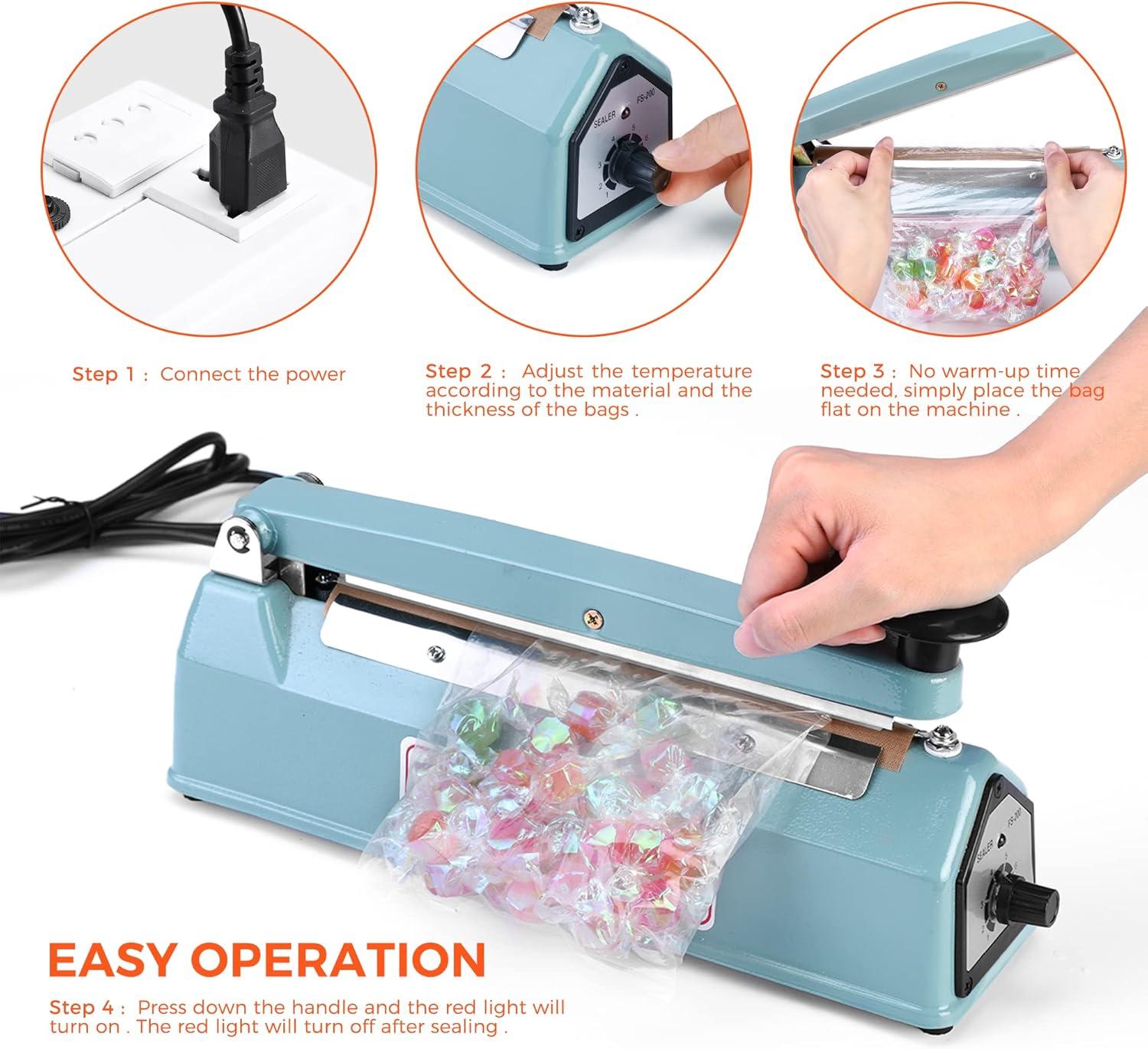 Fuxury 8 Inch Impulse Bag Sealer, Heat Sealer Machine Closer for Cookies, Manual Hot Min Sealing Machine for Poly Bag & Shrink Wrap with 2 Free Repair Kit (Blue)