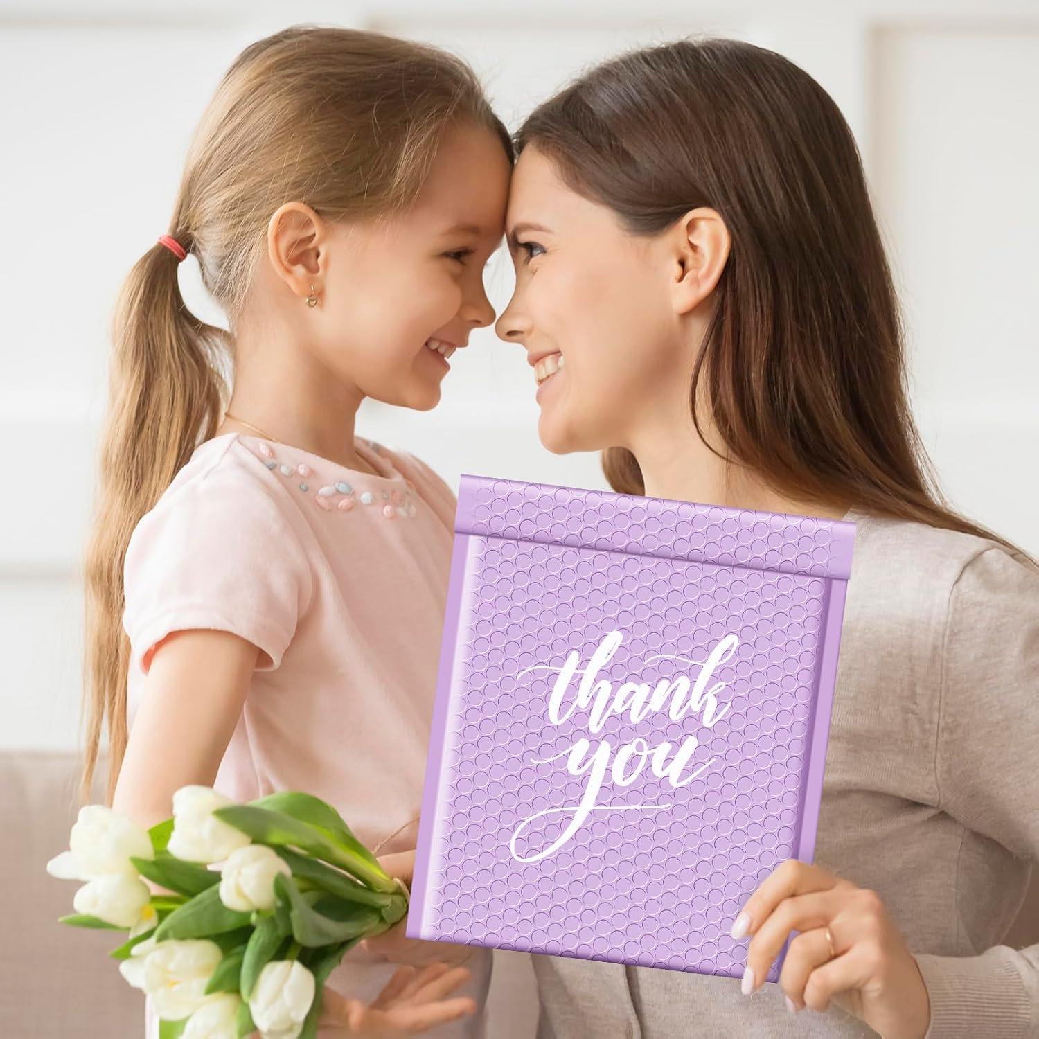 Fuxury Bubble Mailers 4x8 Inch 500 Pack Padded Envelopes Usable Size 4x7" Thick Mailing Envelopes Bubble Opaque Padded Mailers Shipping Bags for Mailing Jewelry Makeup Small Business White(Lavender)
