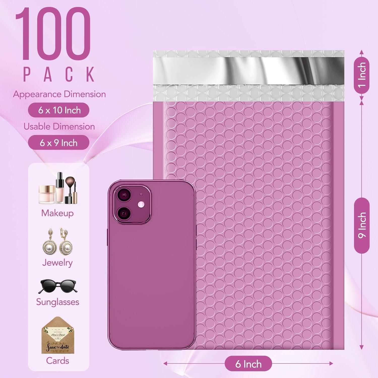 Fuxury Bubble Mailers 6×10″ 100 Pack, Gradient Blue Padded Envelopes Usable Size 6×9″ Self Seal Mailing Envelopes Bubble Padded Shipping Bags for Mailing,Packaging, Small Business(Pinkish Purple)