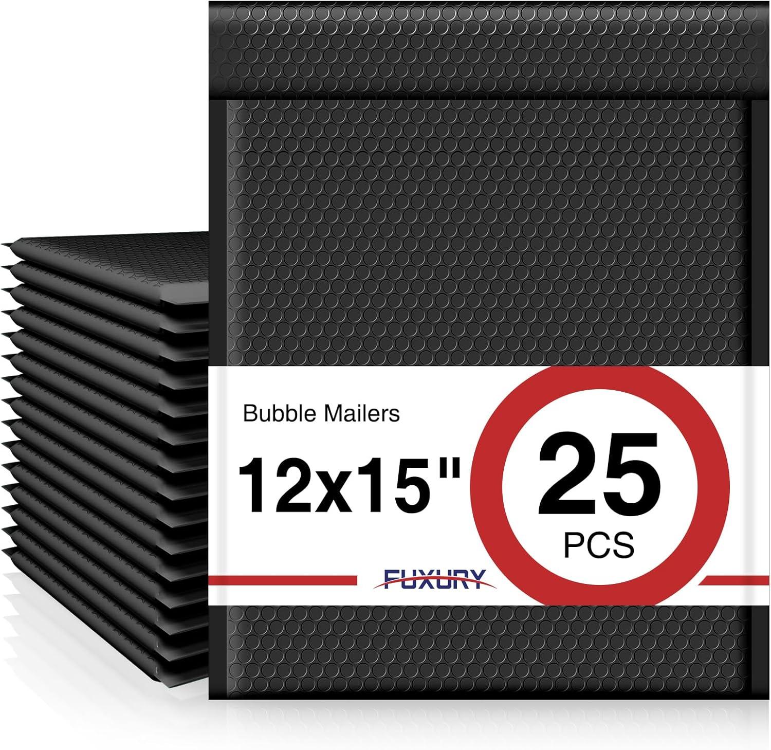 Fuxury Kraft Bubble Mailer 8.5×12 Inch 25 Pack,Strong Adhesion Padded Envelopes,Self Seal Bubble Envelopes, Waterproof Cushioned Padded Mailers Packaging for Small Business,Bulk Black(Yellow)