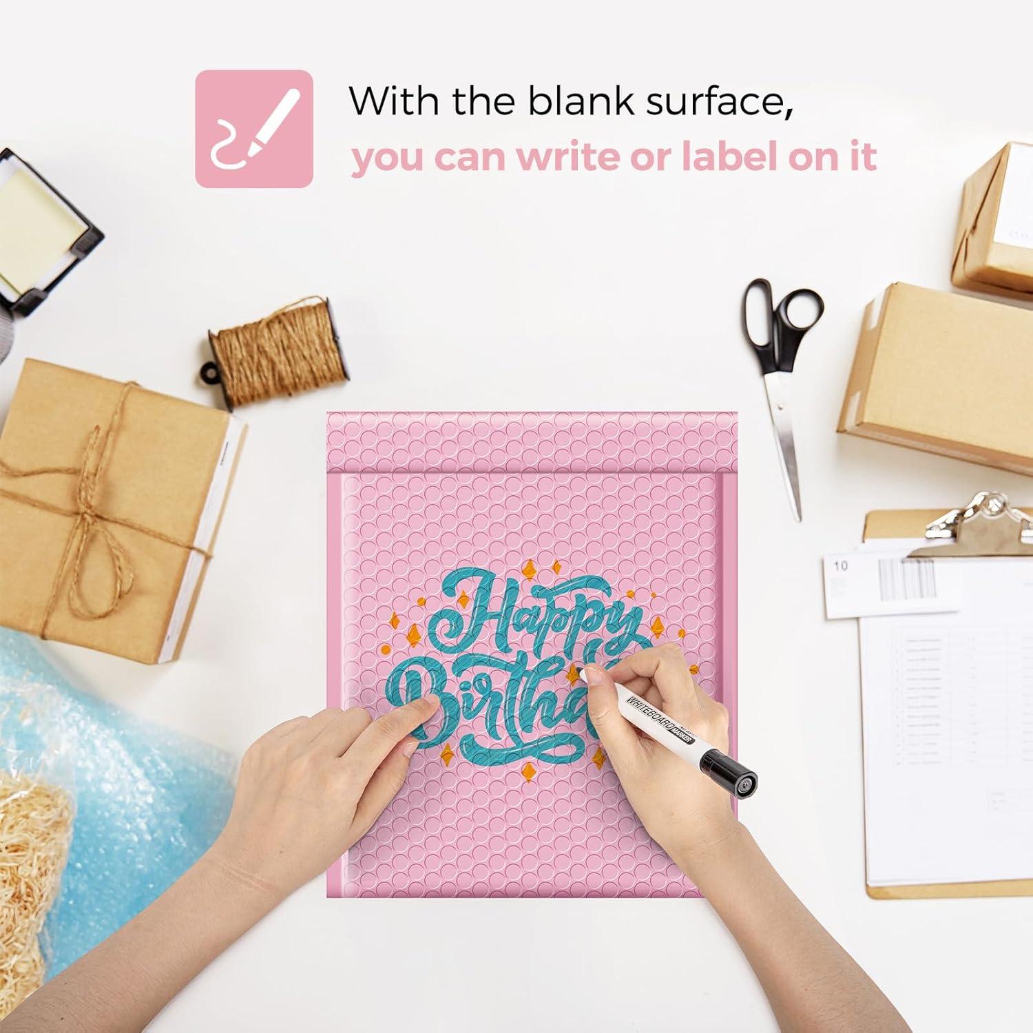 Perfect Size Bubble Mailer: The poly bubble mailers outer size is 6×10 inch, while the inner size is 6×9 inch. Small pink bubble mailers are very suitable for transporting for jewelry, makeup, cards, phone case, Lips, photos,handcraft and more. Great for small business packing.