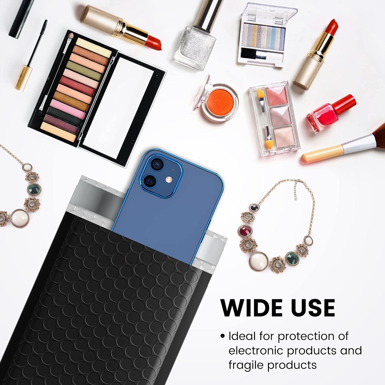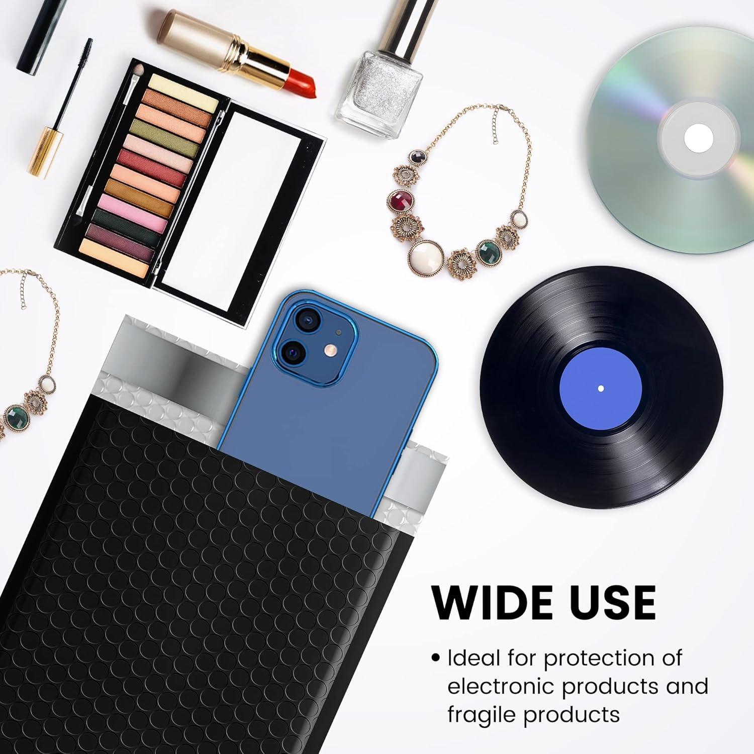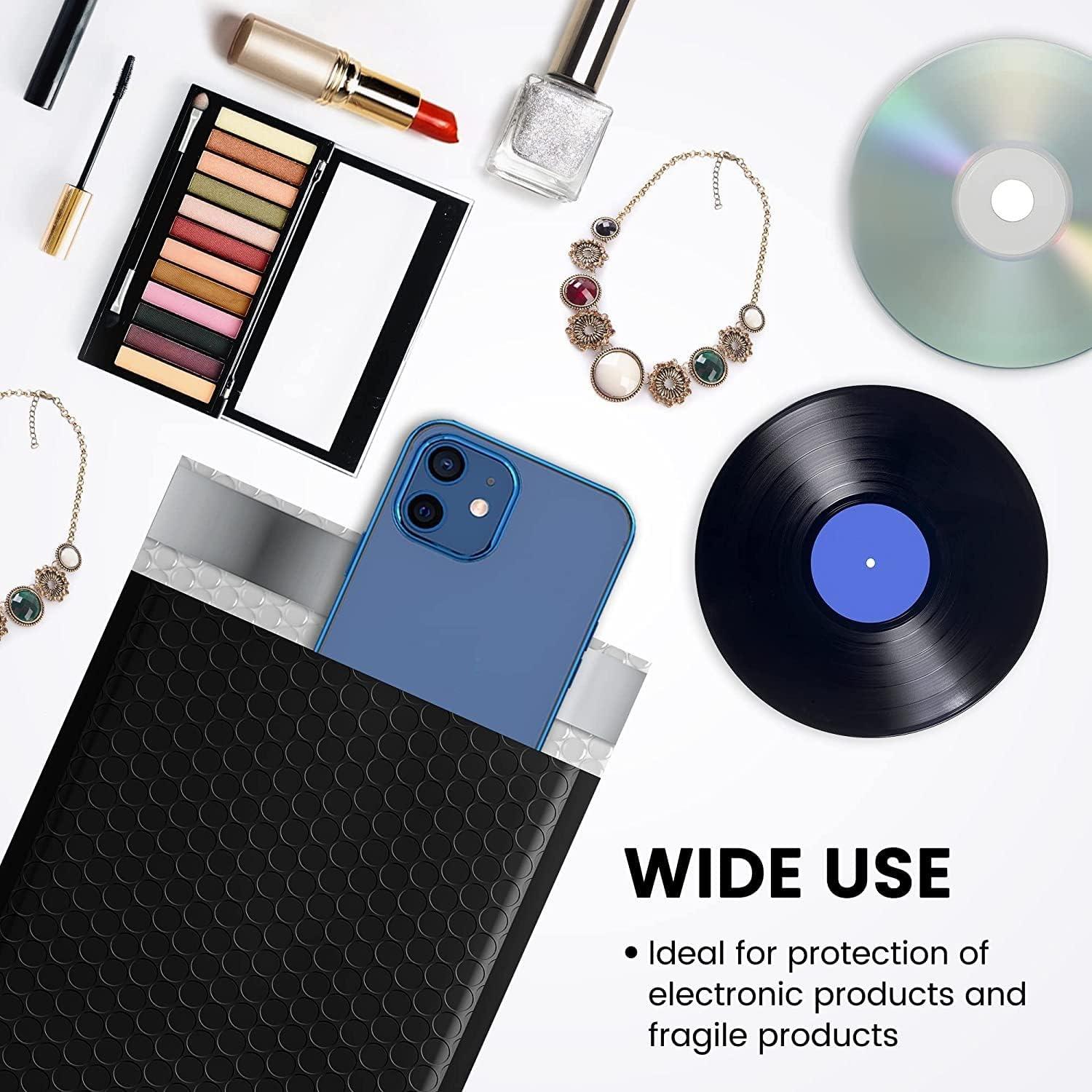 Perfect Size Bubble Mailer: The poly bubble mailers outer size is 6×10 inch, while the inner size is 6×9 inch. It is very suitable to transport for jewelry, makeup, cards, phone case, Lips, photos, handcraft and more.