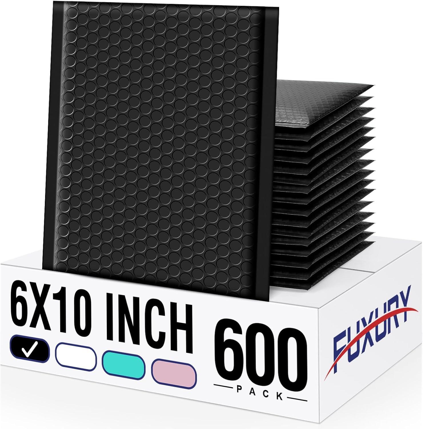 Fuxury Bubble Mailers 6×10“ 3000 Pack Black Padded Envelopes Usable Size 6×9″ Thick Mailing Envelopes Bubble Padded, Shipping Bags for Mailing,Packaging, Small Business, Boutique, Bulk #0(Black)