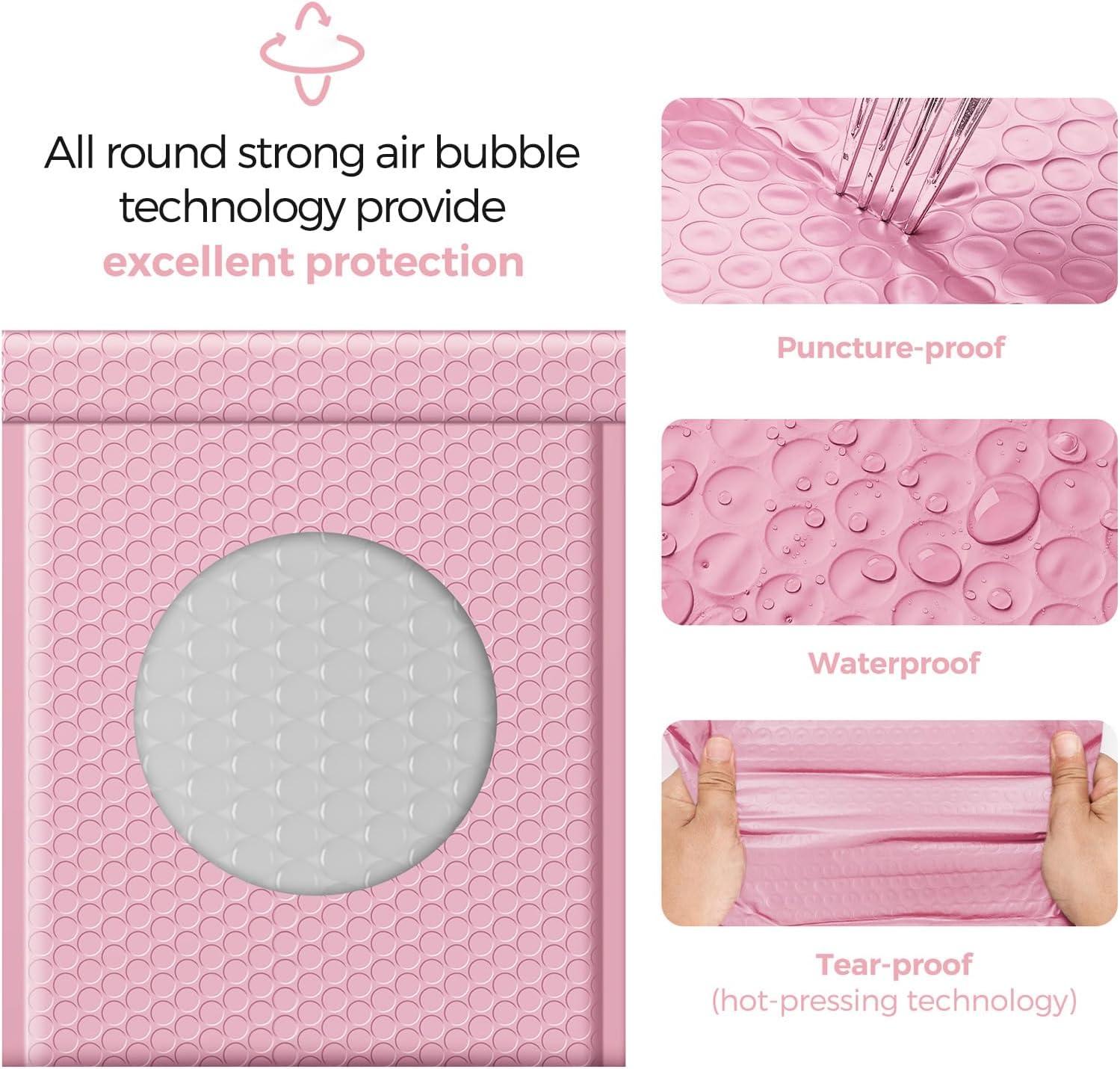 Perfect Size Bubble Mailer: The bubble mailers outer size is 6×10 inch, while the inner size is 6×9 inch. Small pink bubble mailers are very suitable for transporting for jewelry, makeup, cards, phone case, Lips, photos,handcraft and more. Great for small business packing.