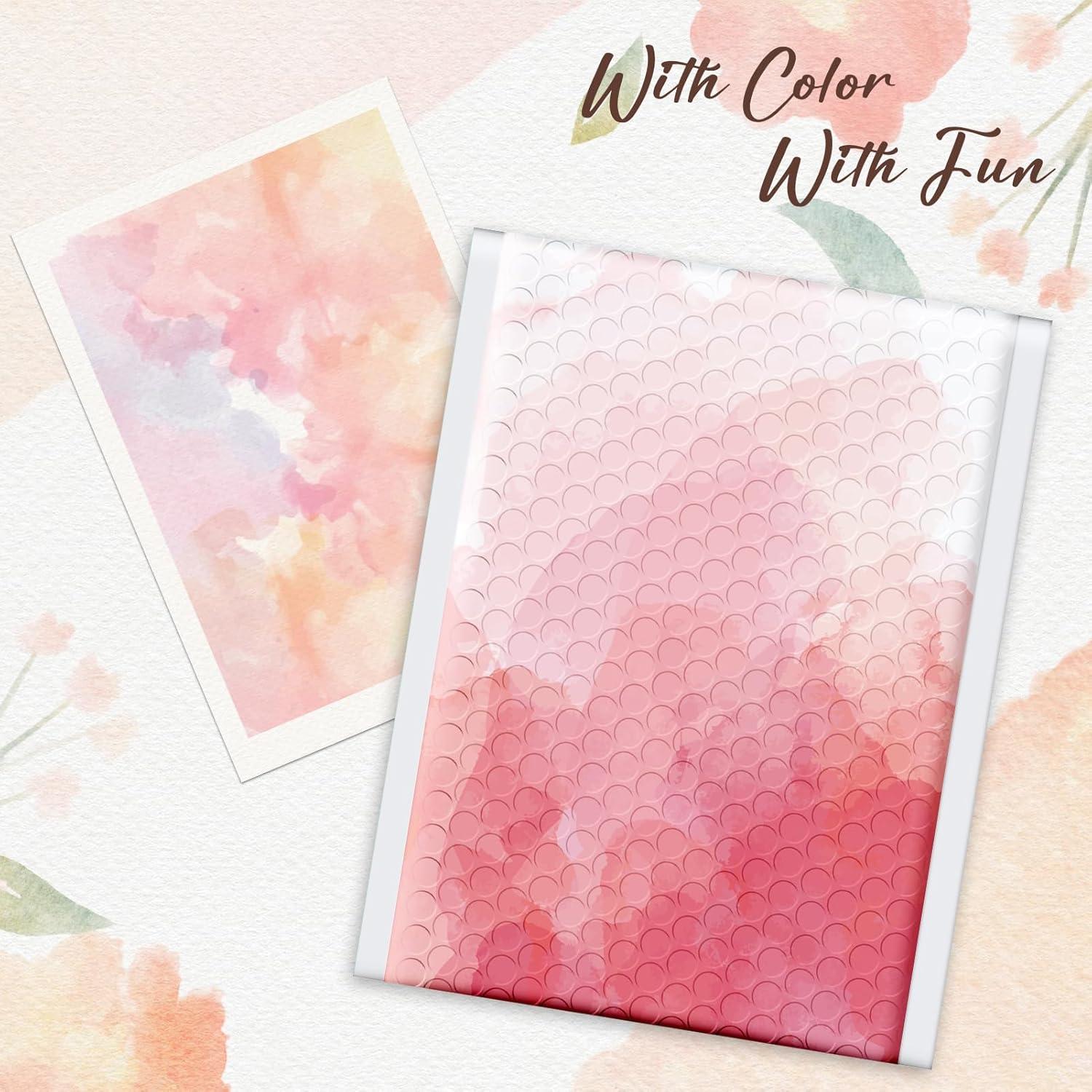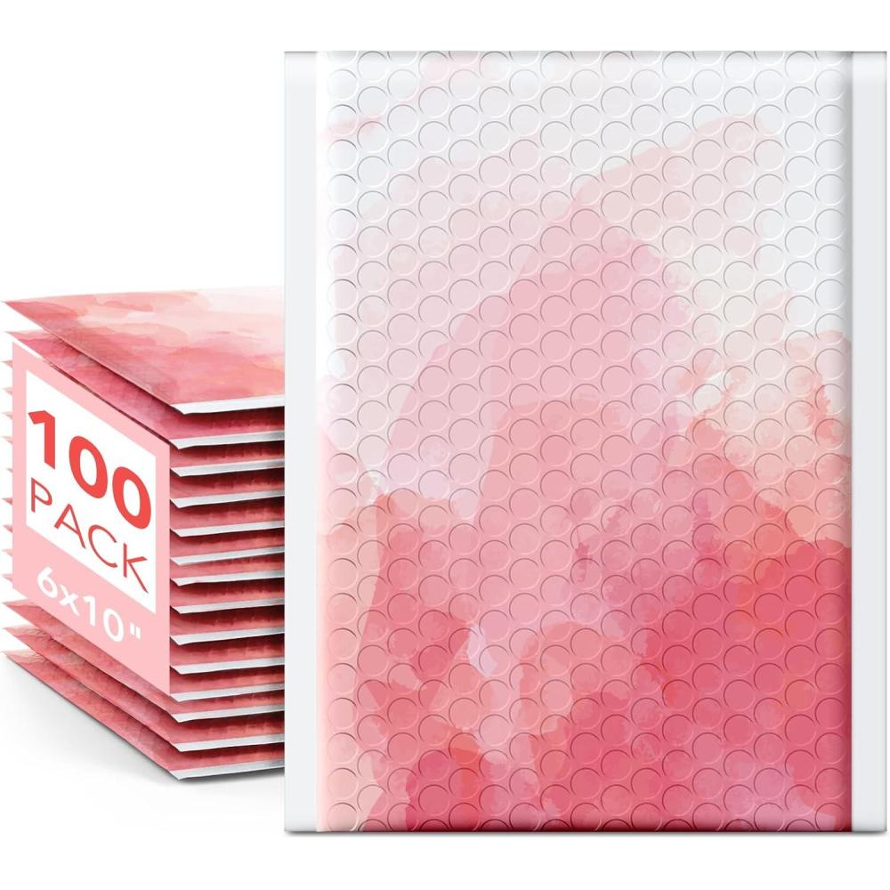 imageFuxury Bubble Mailers 6x10 Pink Watercolor Padded Envelopes 100 Pack Usable Size 6x9 Bubble Envelopes Strong Adhesion Padded Mailers Thick Waterproof Shipping Envelops for Mailing Jewelry Makeup 0Pink Watercolor