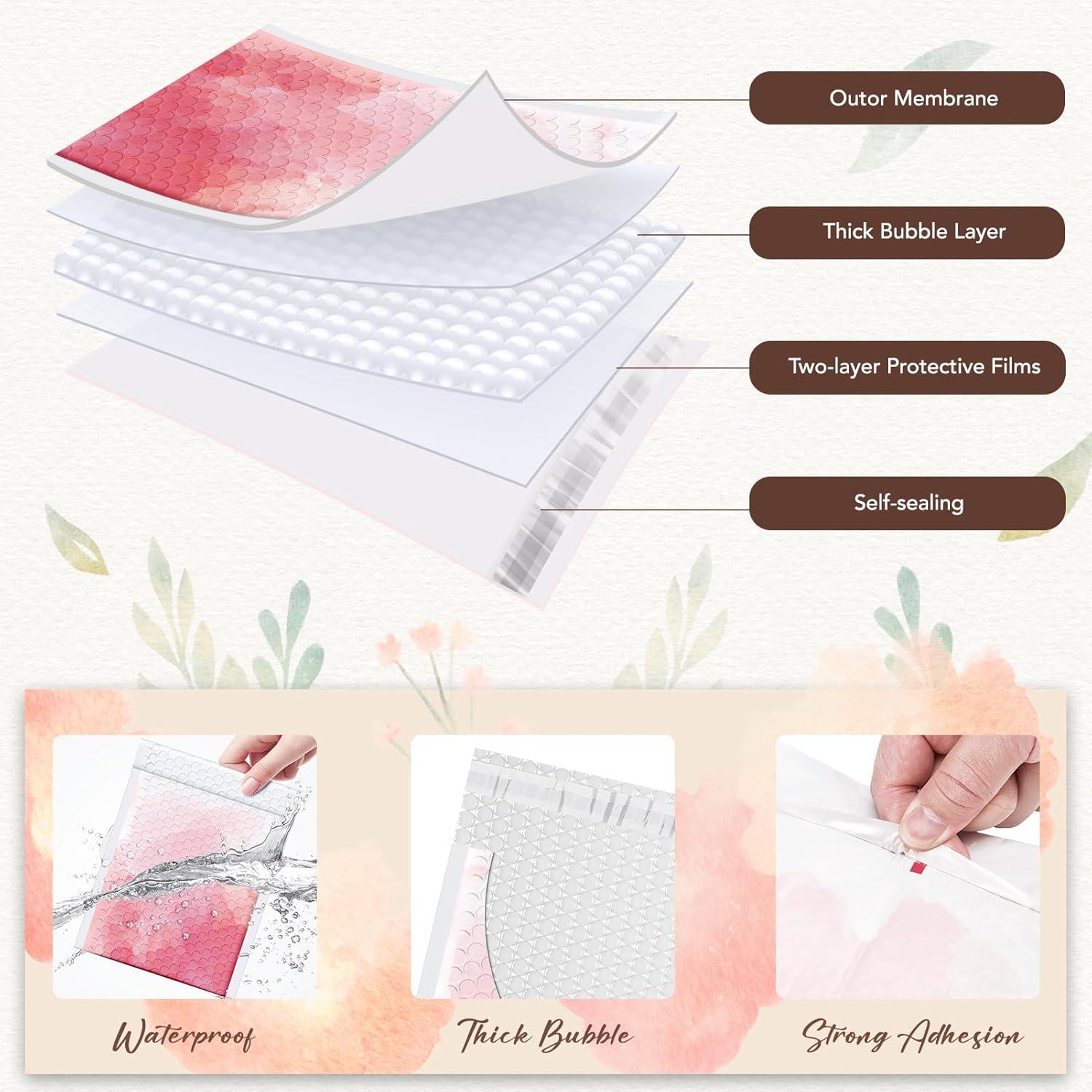 Watercolor Pink Bubble Mailer:Each design of our padded envelopes is uniquely hand-drawn. From gouache-inspired still lifes to spring blooms,we use a soft watercolor light-dark Pink to match nature's smoothing elements. Choose Fuxury's watercolor bubble mailer to enjoy the gentle visual ,which can bring happiness to daily life.