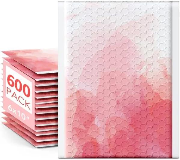 Fuxury Bubble Mailers 6×10″ Pink Watercolor Padded Envelopes 100 Pack Usable Size 6×9″ Bubble Envelopes Strong Adhesion Padded Mailers Thick Waterproof Shipping Envelops for Mailing Jewelry Makeup #0(Pink Watercolor)