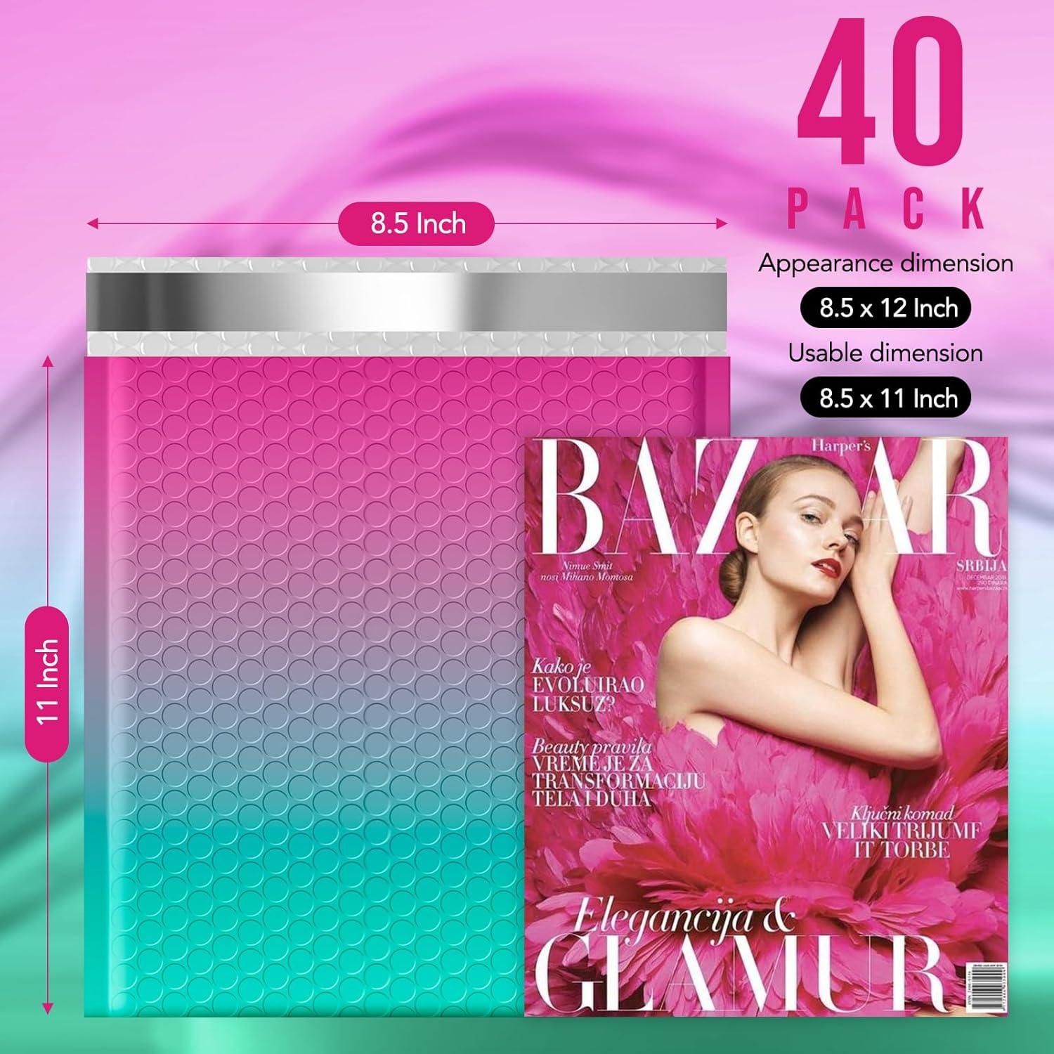 【Opaque Poly Bubble Mailers】The mailing envelopes bubble padded outer size is 8.5×12 inch, while the inner size is 8.5×11 inch. These 40 pack small bubble mailers are made of New polyethylene raw material.Our small padded envelopes are lined with opaque film, even if there is strong light, the items inside the bag cannot be seen, which can protect your privacy.