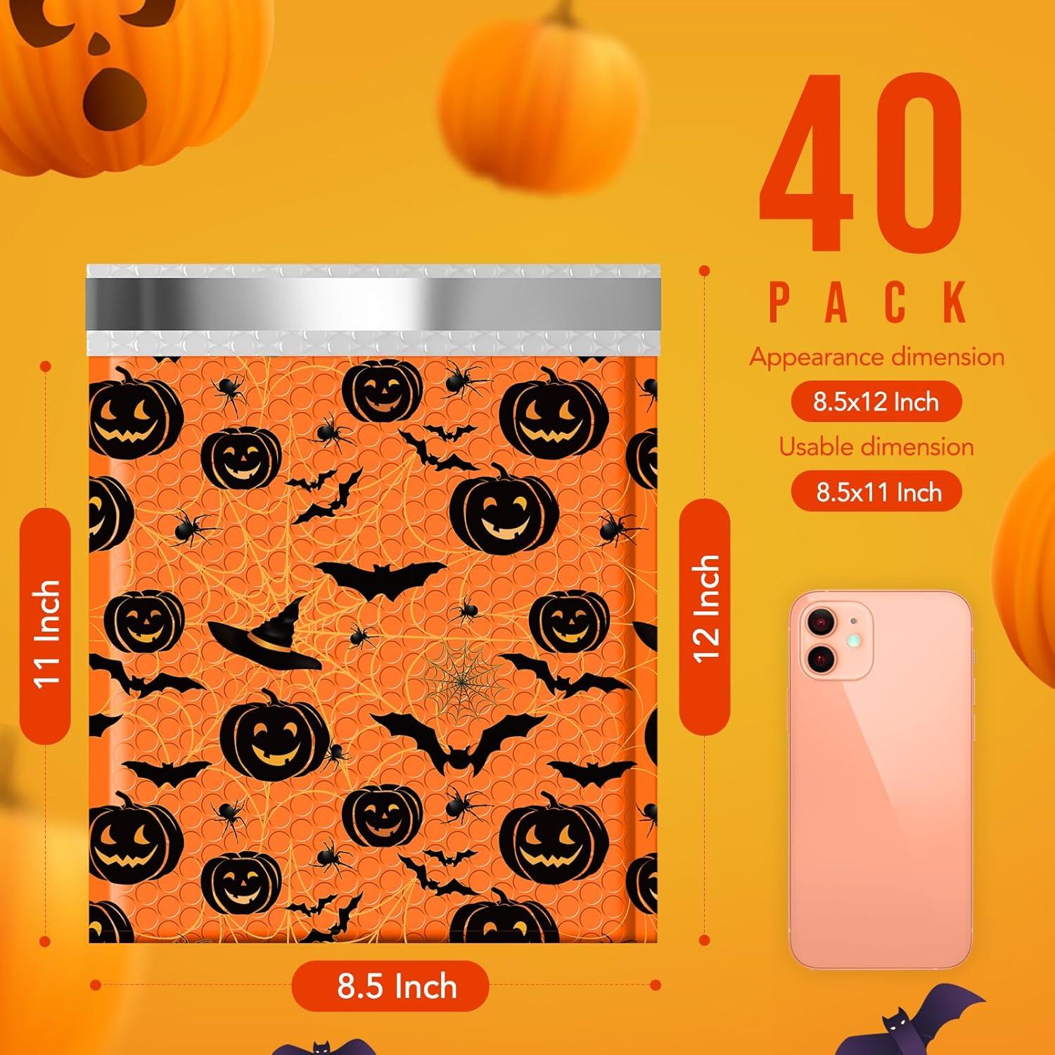 Fuxury Bubble Mailers 8.5x12 Inch 40 Pack Halloween Padded Envelopes Usable Size 8.5x11" Thick Mailing Envelopes Bubble Opaque Padded Mailers Shipping Bags for Mailing Jewelry Makeup Small Business#2(orange)