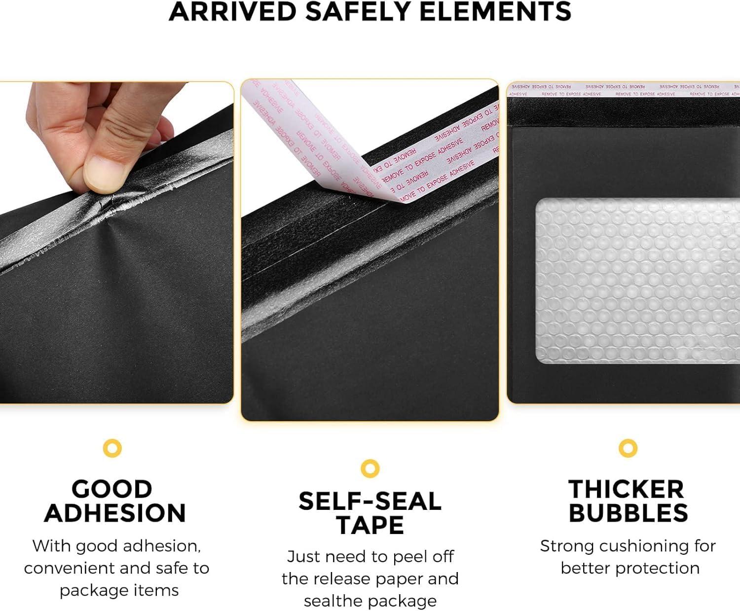 【Simple Peel & Seal 】Simply peel and fold over to seal each package safely and securely.Bubble envelopes 4×8 are equipped with a strong self-sealing adhesive strip that cannot be easily torn apart and tamper-resistant.Moreover,the smooth surface of the paddeds mailers can be written, labelled and stamped.