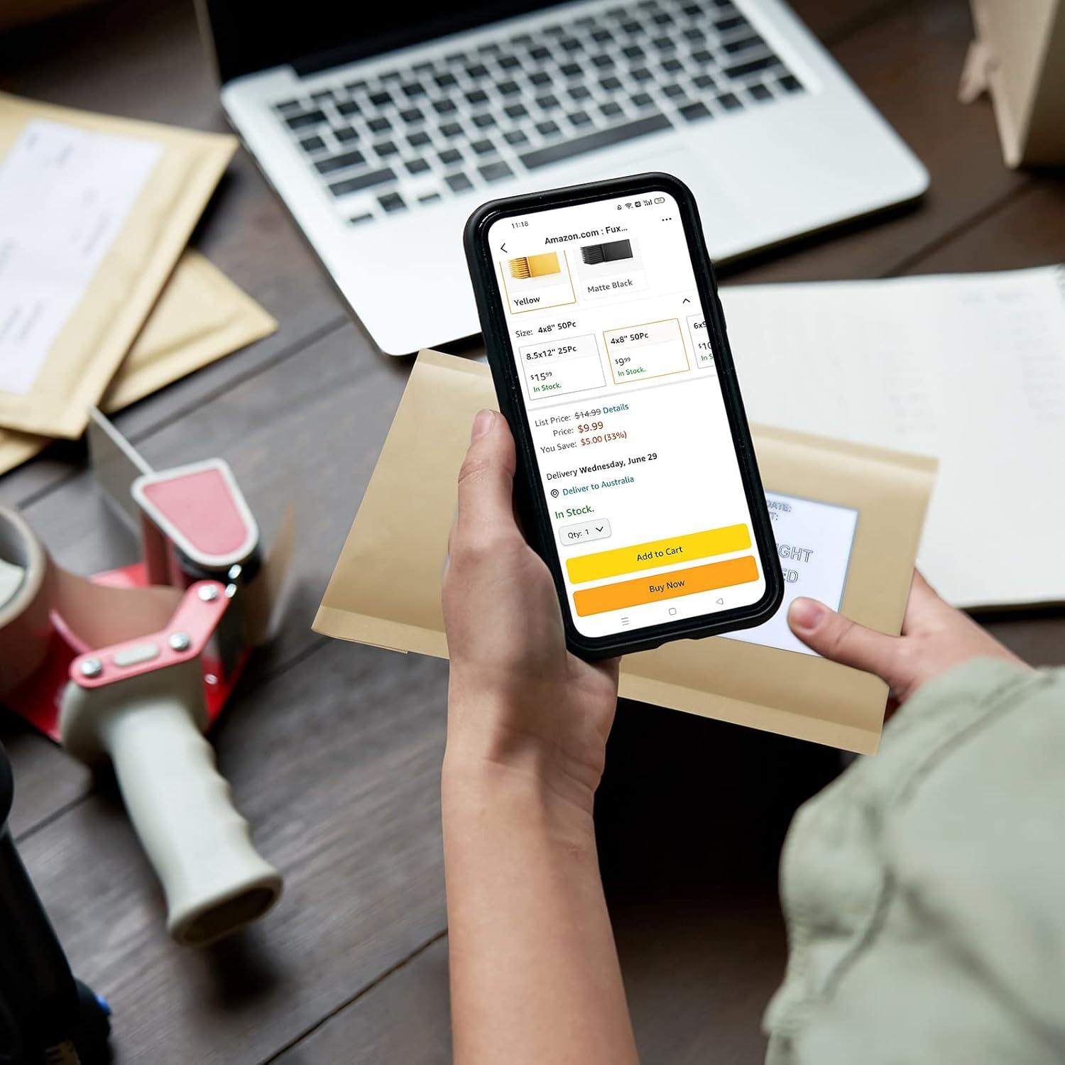 imageFuxury Kraft Bubble Mailers 4x8quot 500Pack EcoFriendly Padded Envelopes Thick Bubble Envelopes Usable Size 4x7quot Waterproof Cushioned Padded Mailers Packaging for Small Business 000 YellowBlack