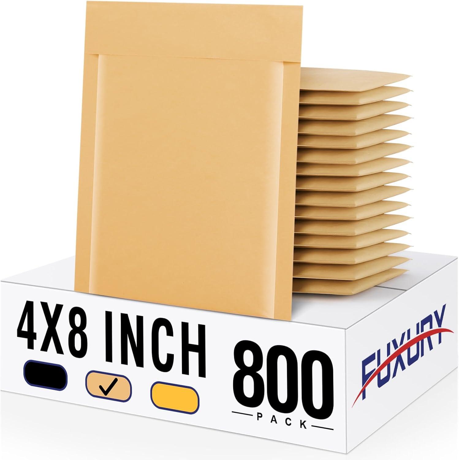Fuxury Kraft Bubble Mailers 4x8" 500Pack Eco-Friendly Padded Envelopes Thick Bubble Envelopes Usable Size 4x7" Waterproof Cushioned Padded Mailers Packaging for Small Business #000 Yellow(Brown)