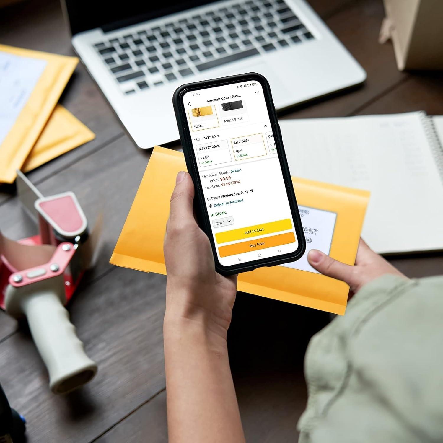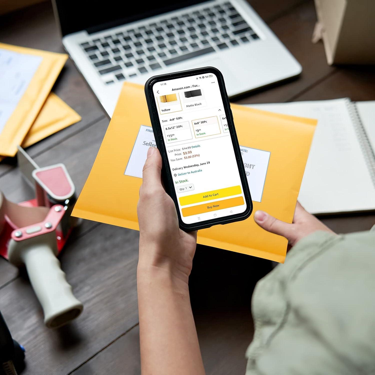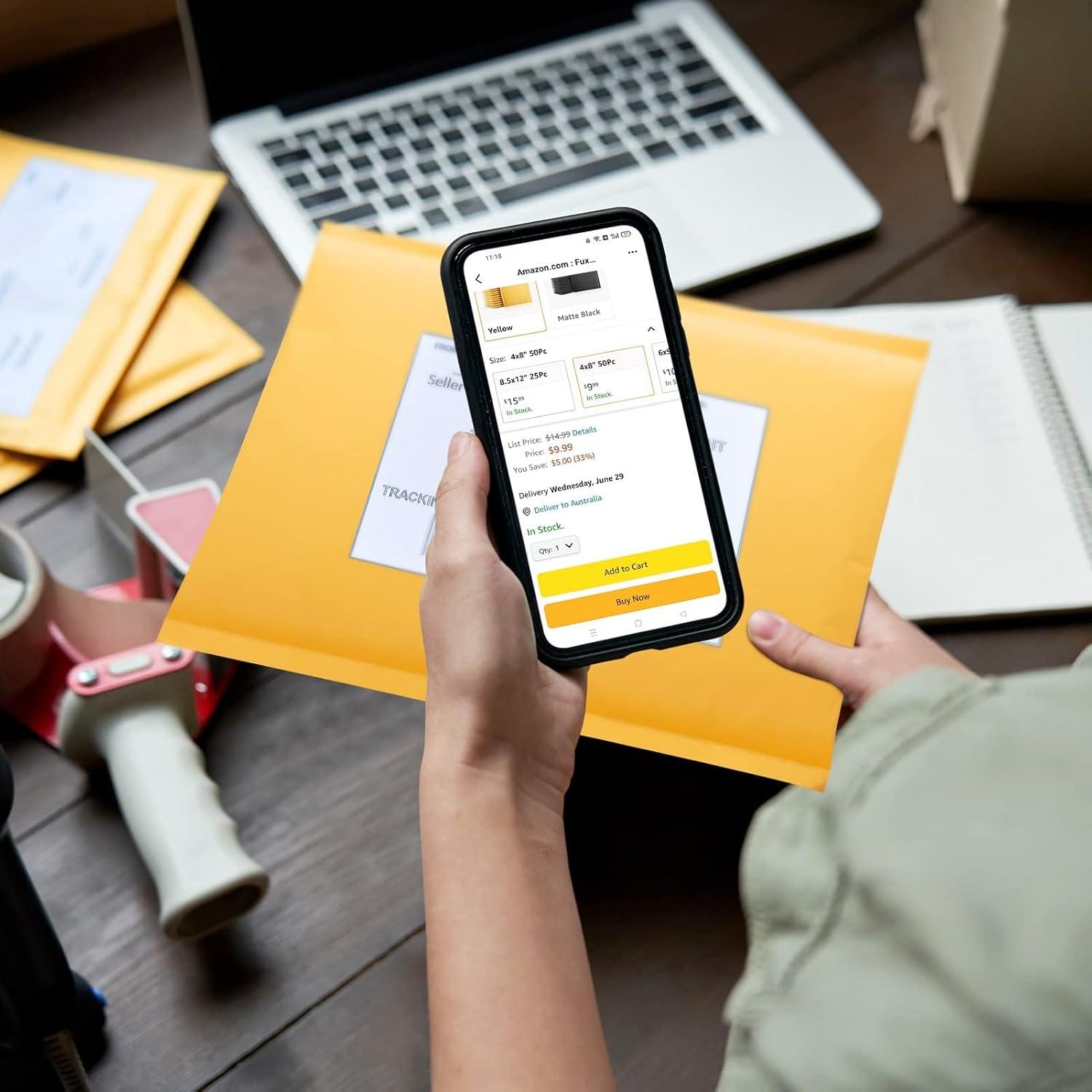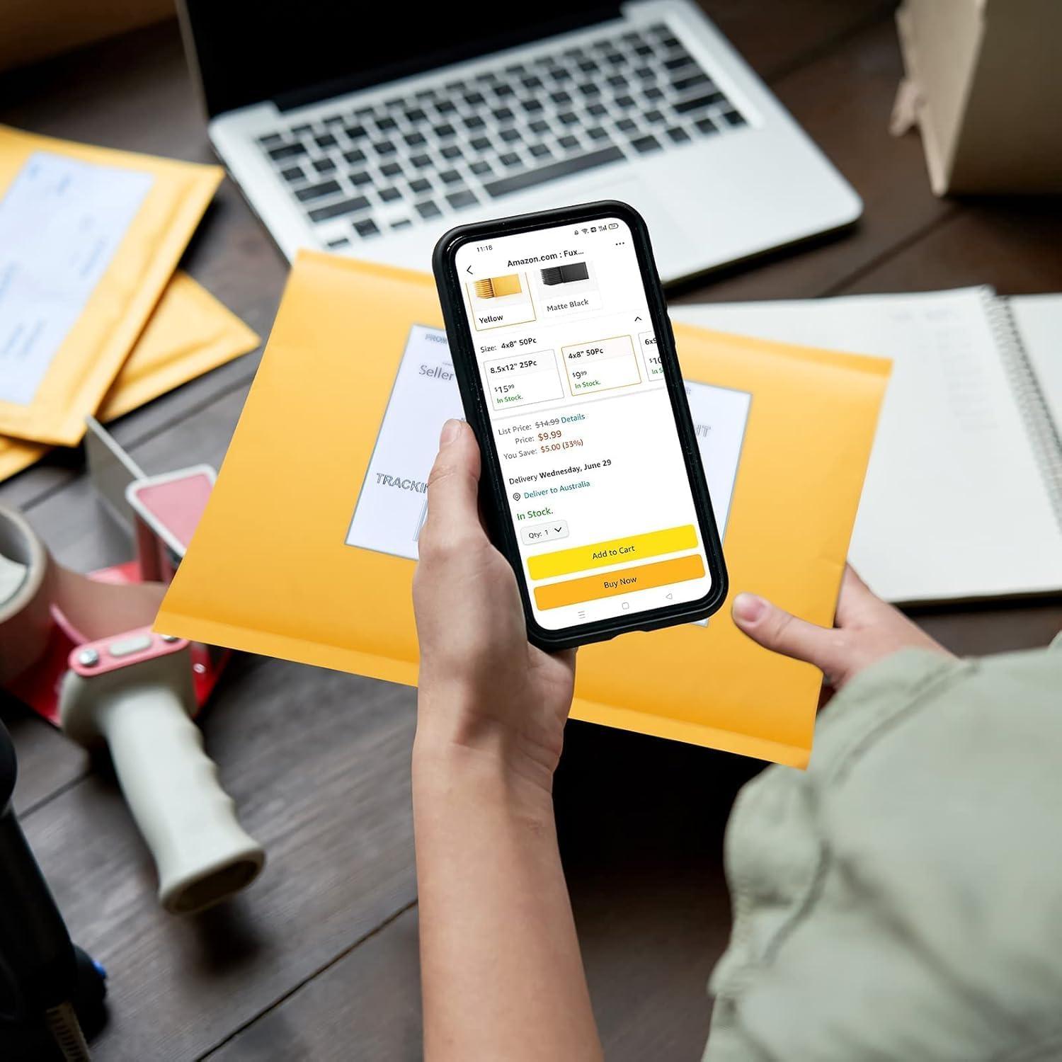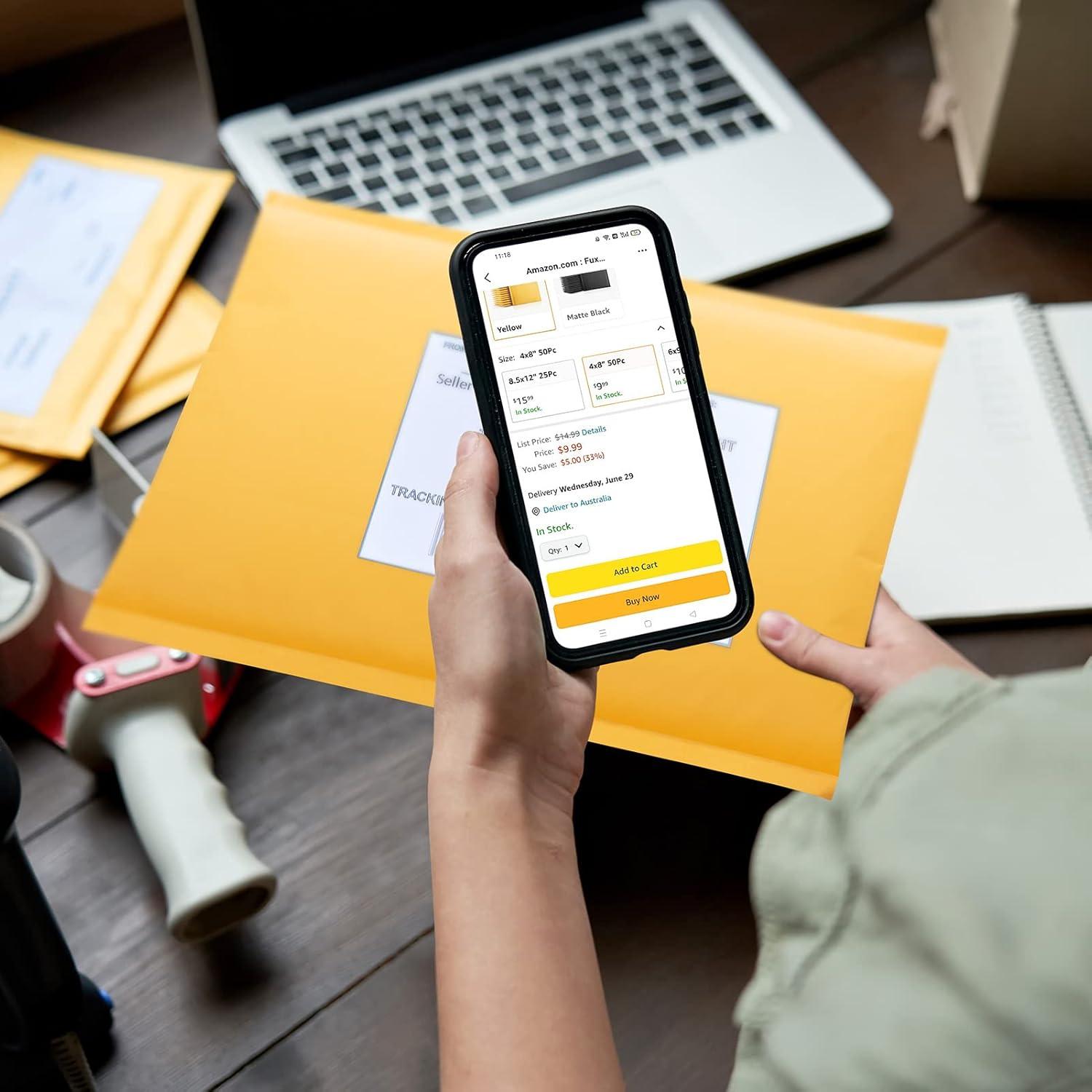 imageFuxury Kraft Bubble Mailers 4x8quot 500Pack EcoFriendly Padded Envelopes Thick Bubble Envelopes Usable Size 4x7quot Waterproof Cushioned Padded Mailers Packaging for Small Business 000 YellowYellow