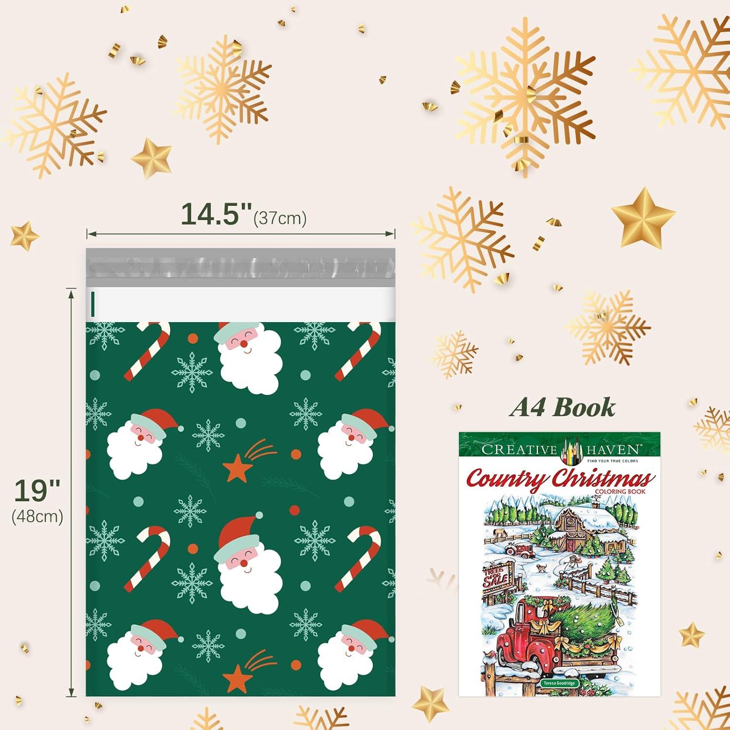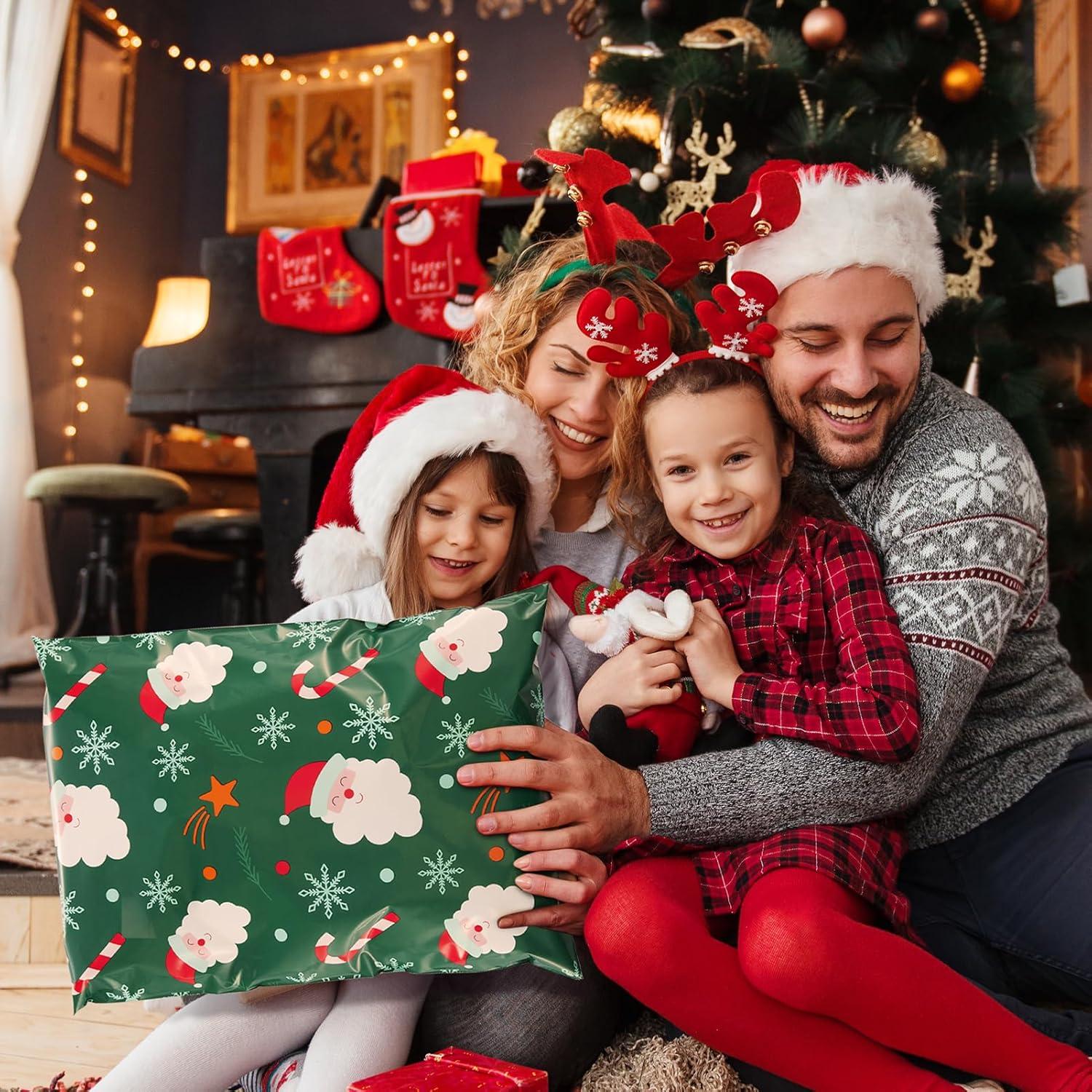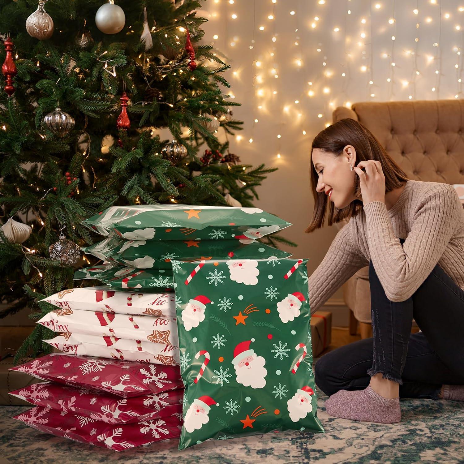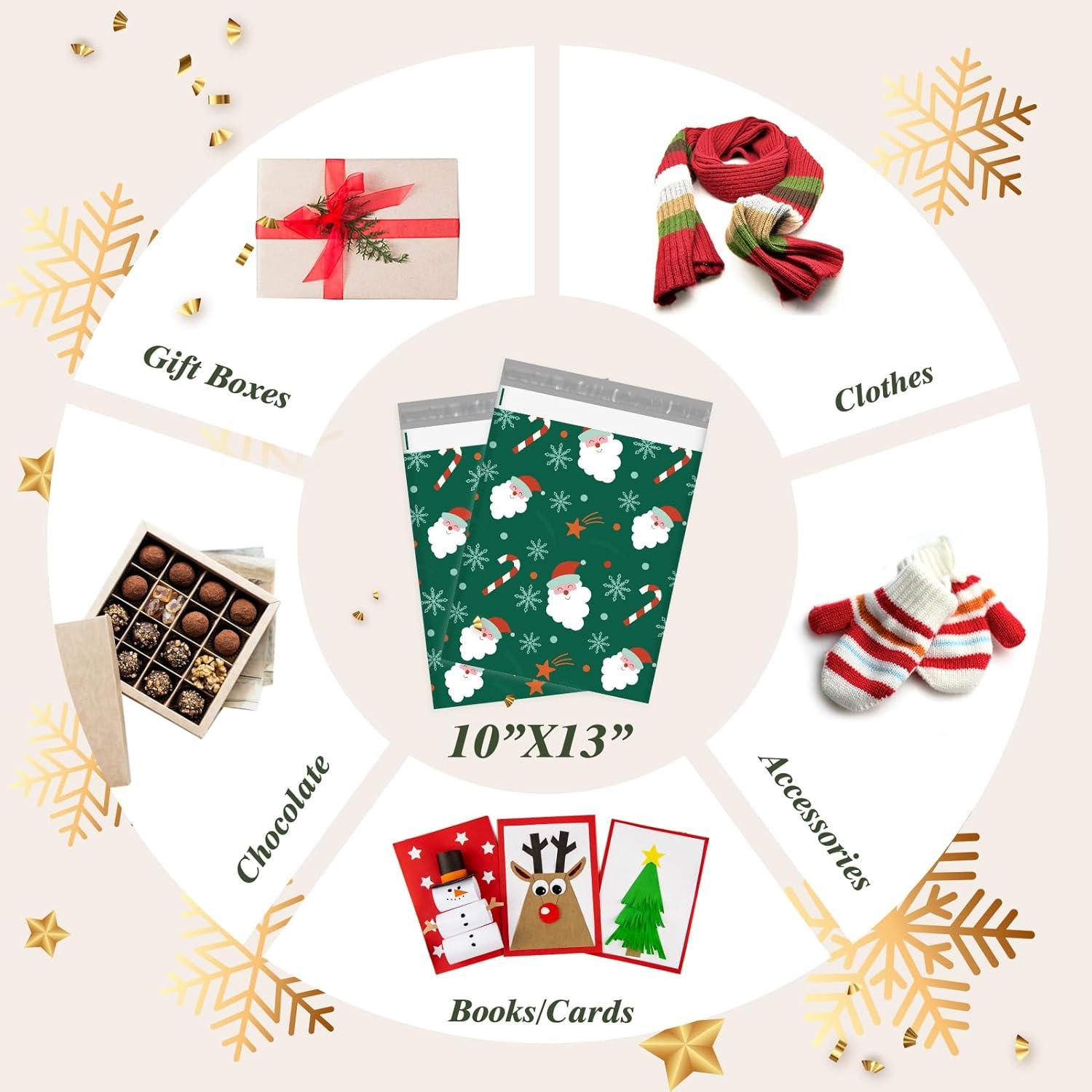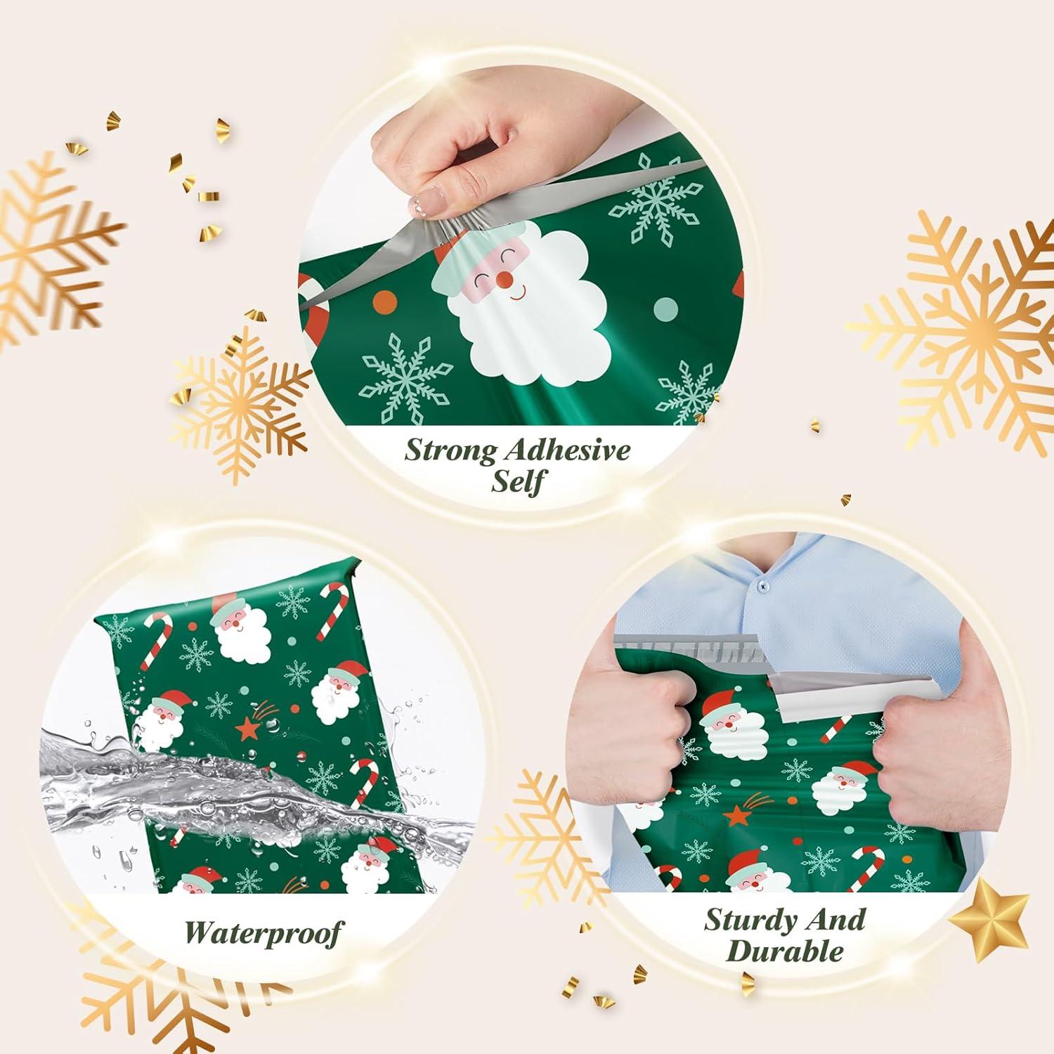 Fuxury Poly Mailers 10×13 Inch,Sturdy Shipping Bags for Clothes,Self Adhesive Mailing Shipping Envelopes,Waterproof Packaging Bags for Small Business,Colorful Mailers Poly Bags 50 Pack Butterflies(Green Christmas Santa)