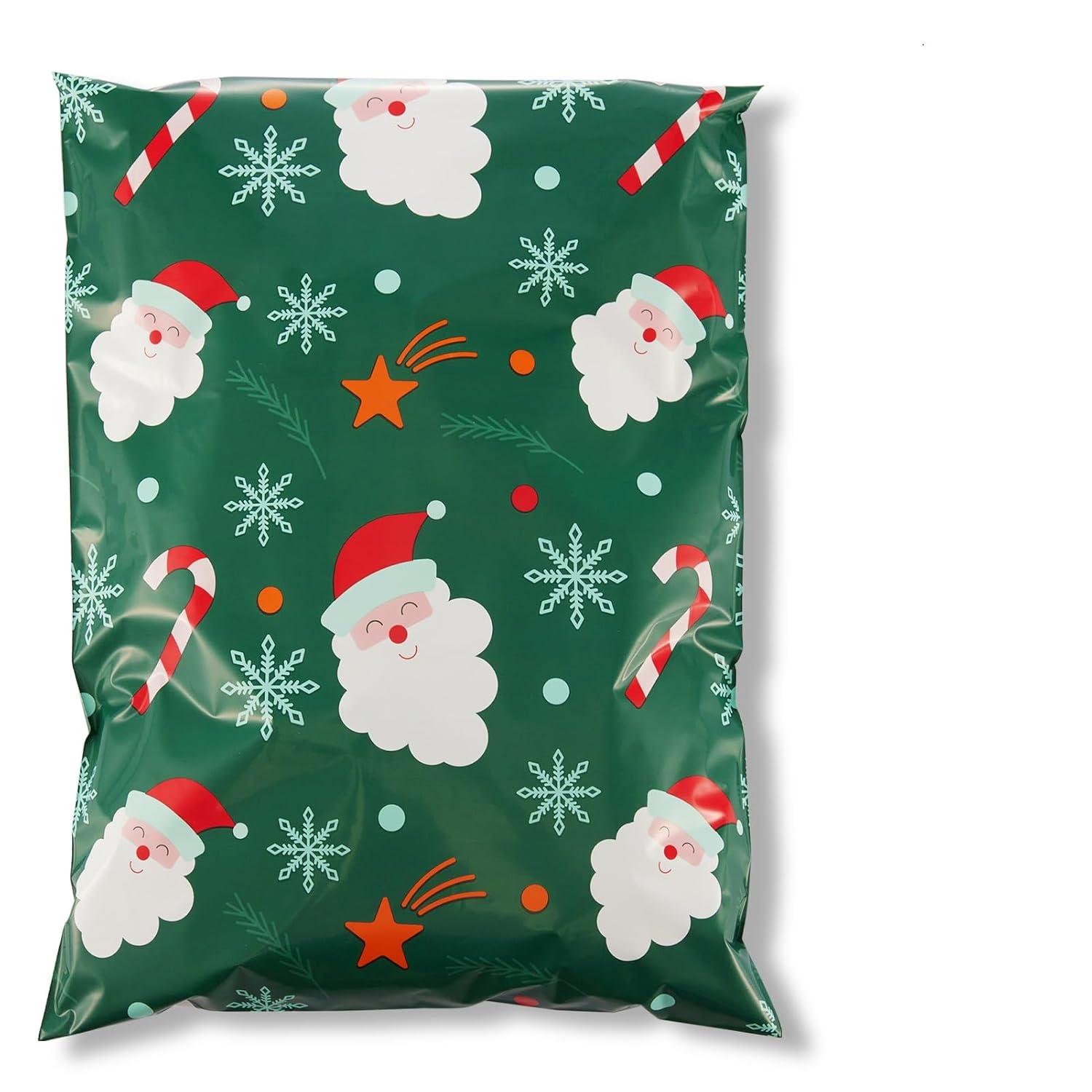Fuxury Poly Mailers 10x13 Inch,Sturdy Shipping Bags for Clothes,Self Adhesive Mailing Shipping Envelopes,Waterproof Packaging Bags for Small Business,Colorful Mailers Poly Bags 50 Pack Butterflies(Green Christmas Santa)