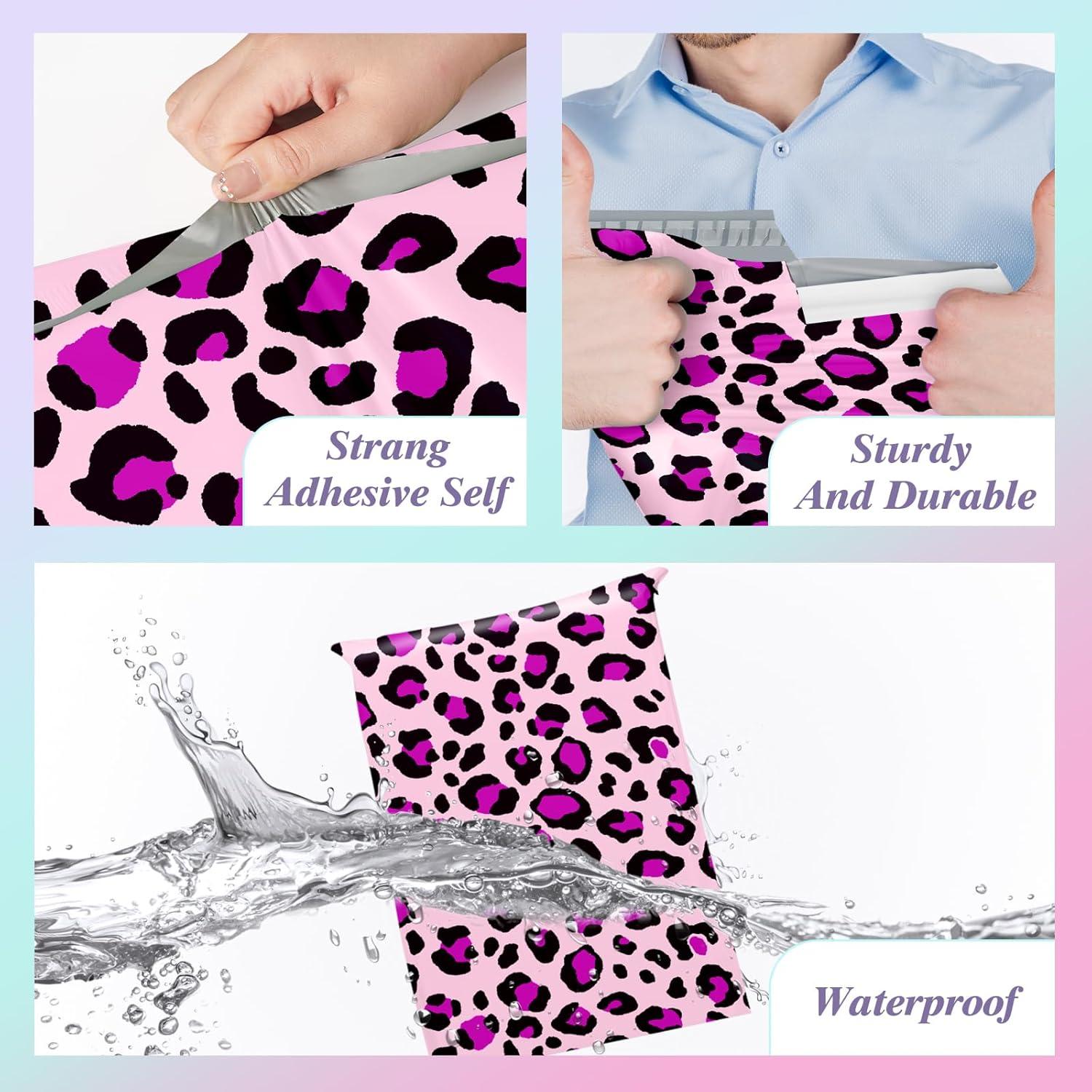 Fuxury Poly Mailers 10×13 Inch,Sturdy Shipping Bags for Clothes,Self Adhesive Mailing Shipping Envelopes,Waterproof Packaging Bags for Small Business,Colorful Mailers Poly Bags 50 Pack Butterflies(Leopard)