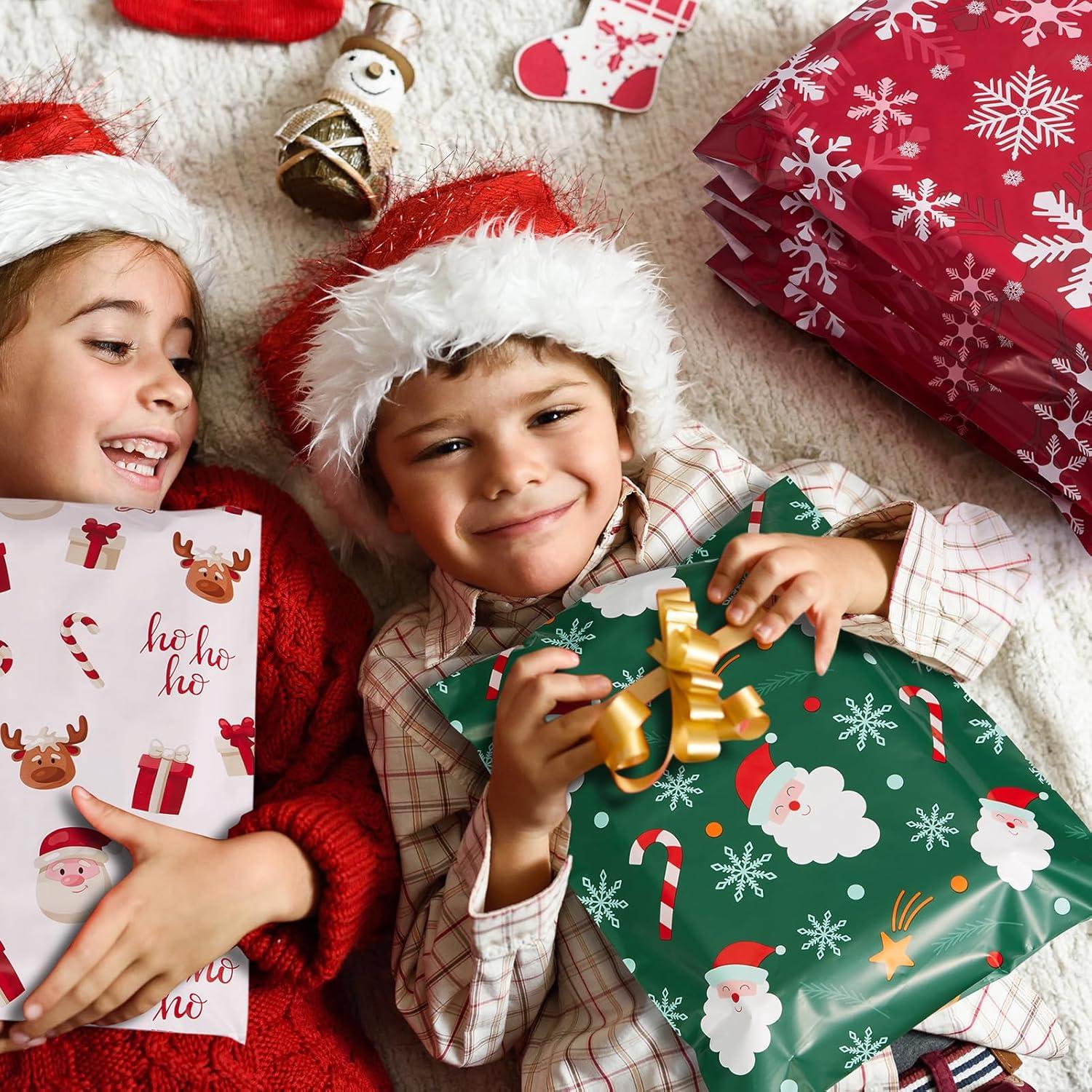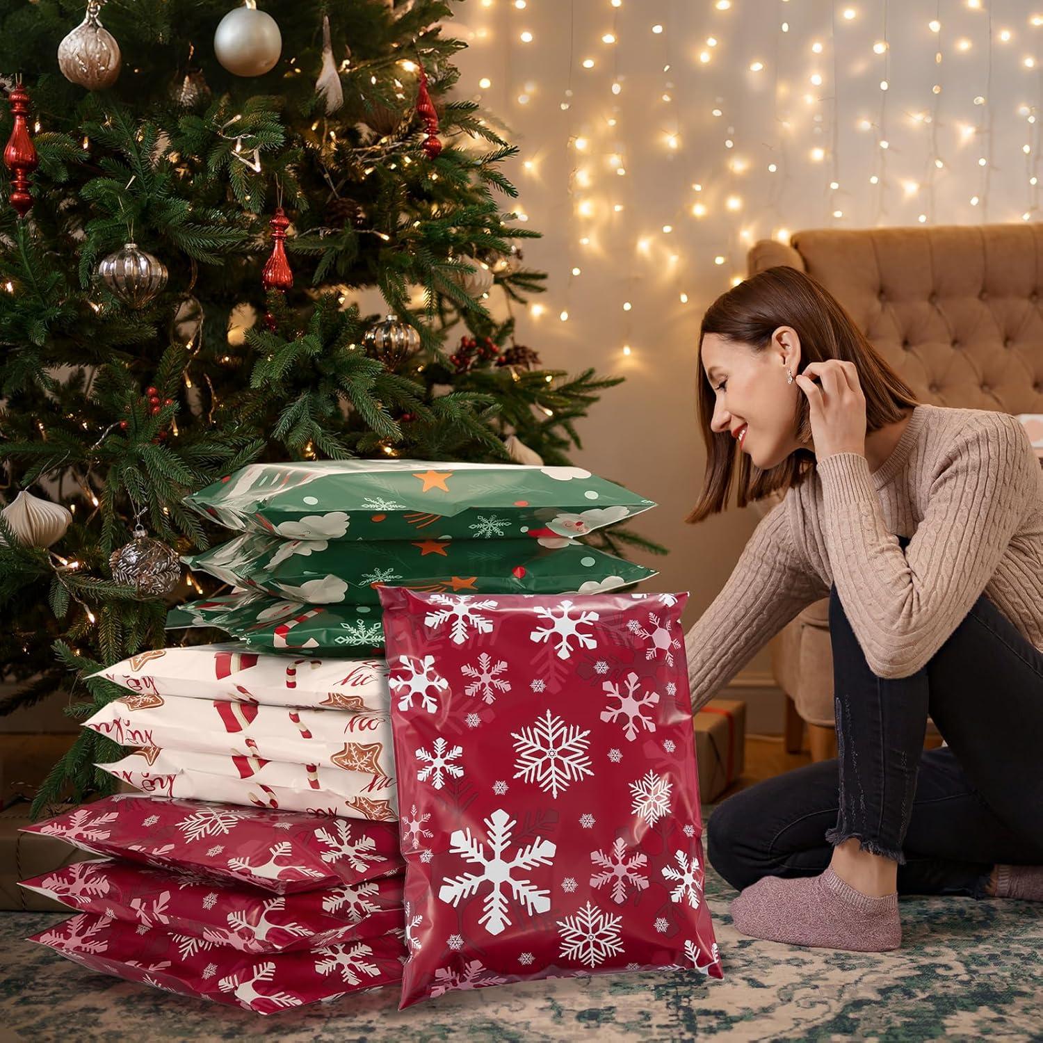 Fuxury Poly Mailers 10×13 Inch,Sturdy Shipping Bags for Clothes,Self Adhesive Mailing Shipping Envelopes,Waterproof Packaging Bags for Small Business,Colorful Mailers Poly Bags 50 Pack Butterflies(White Christmas Santa)